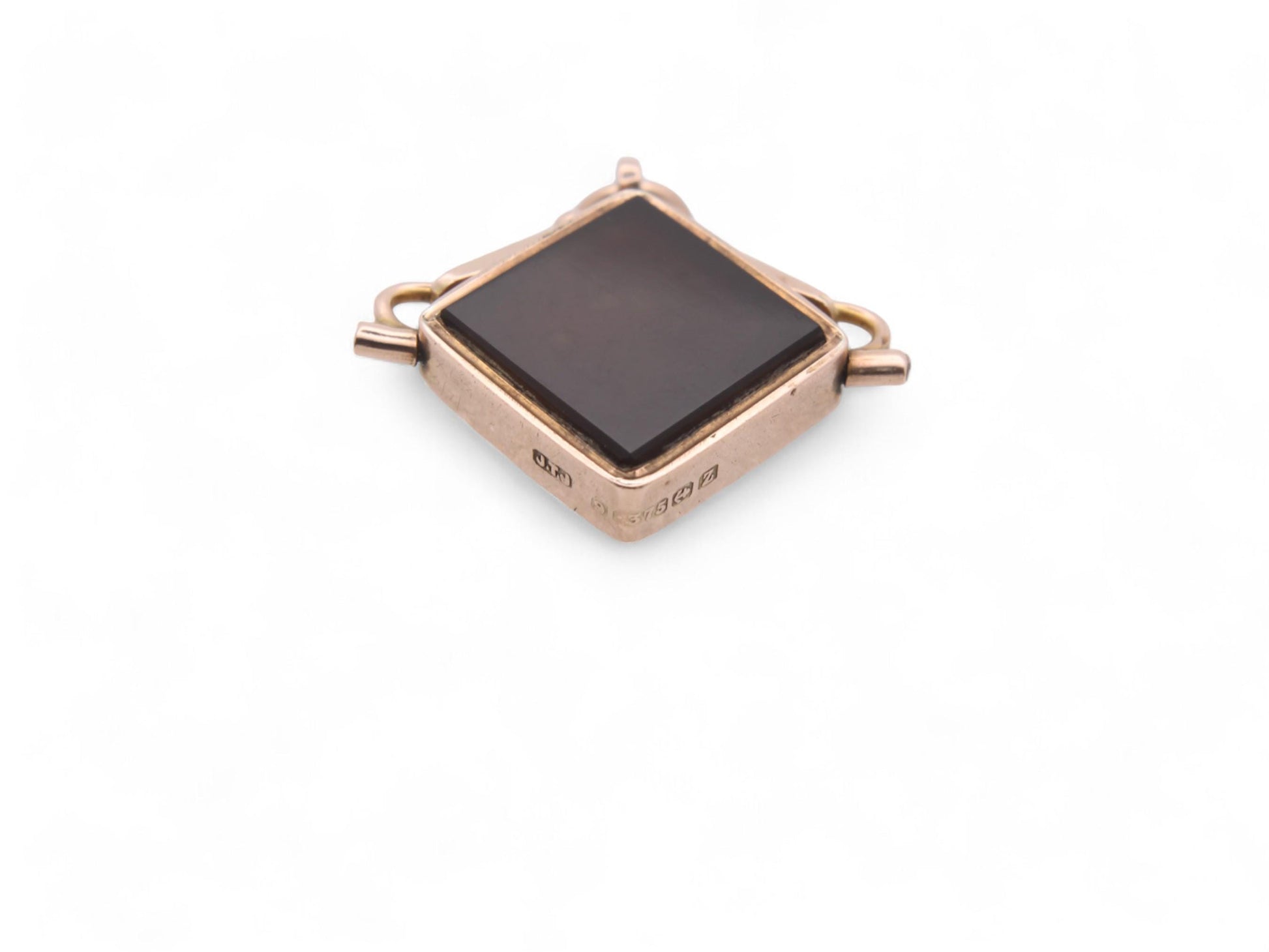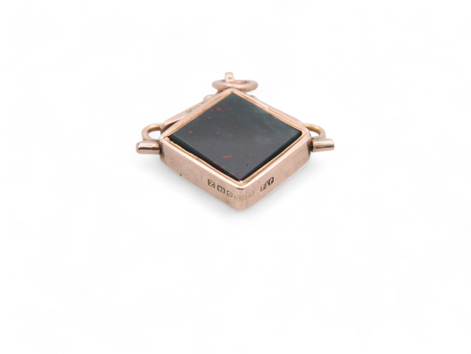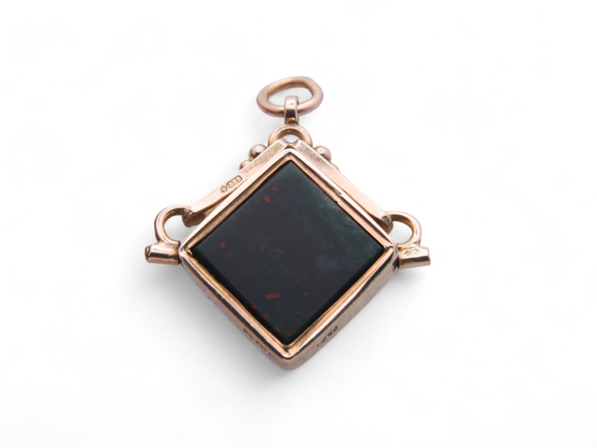 Antique 9ct Gold Bloodstone & Carnelian Square Spinner Pendant, 1924