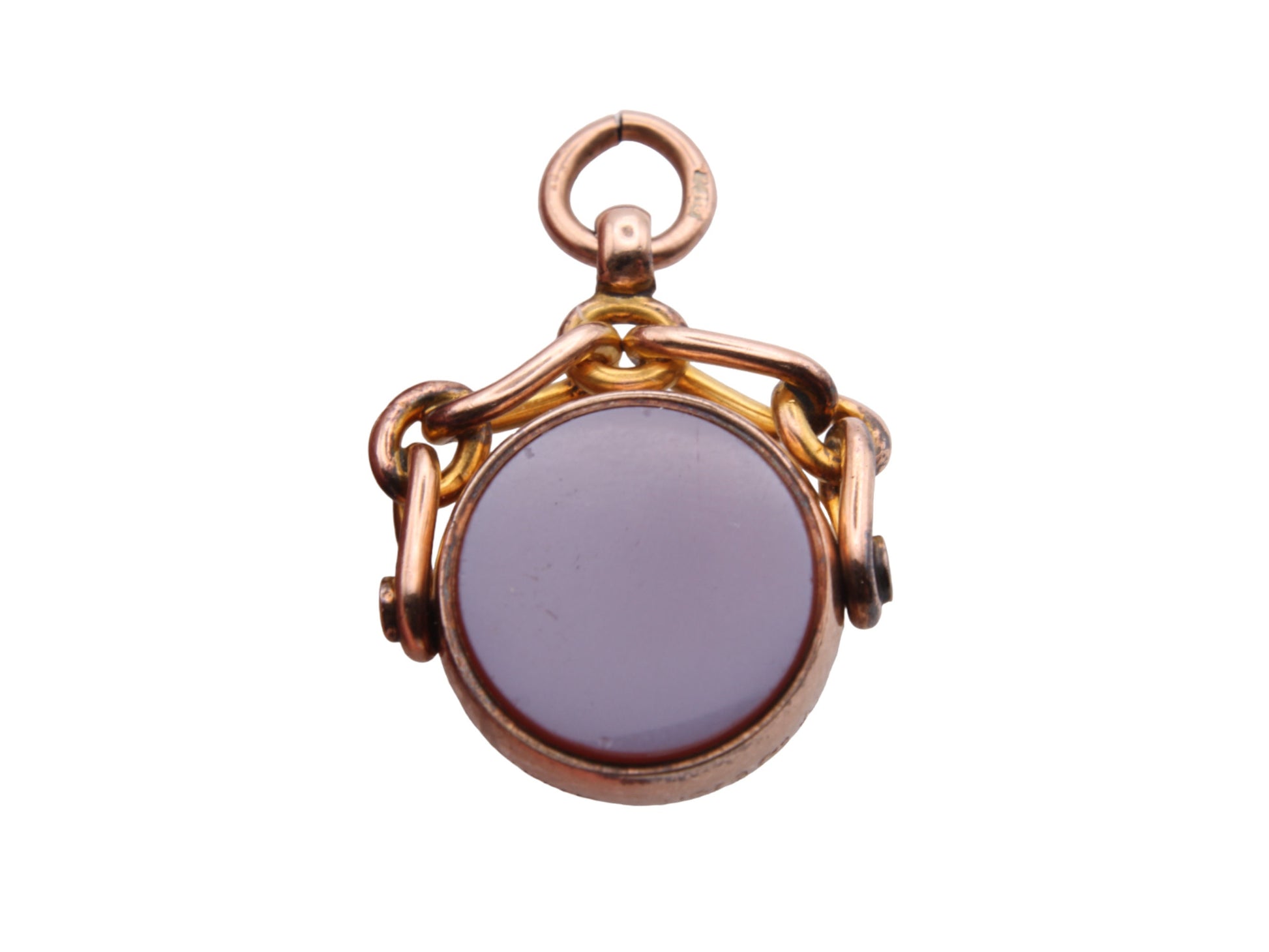 Antique 9ct Gold Bloodstone & Lilac Agate Spinner Pendant