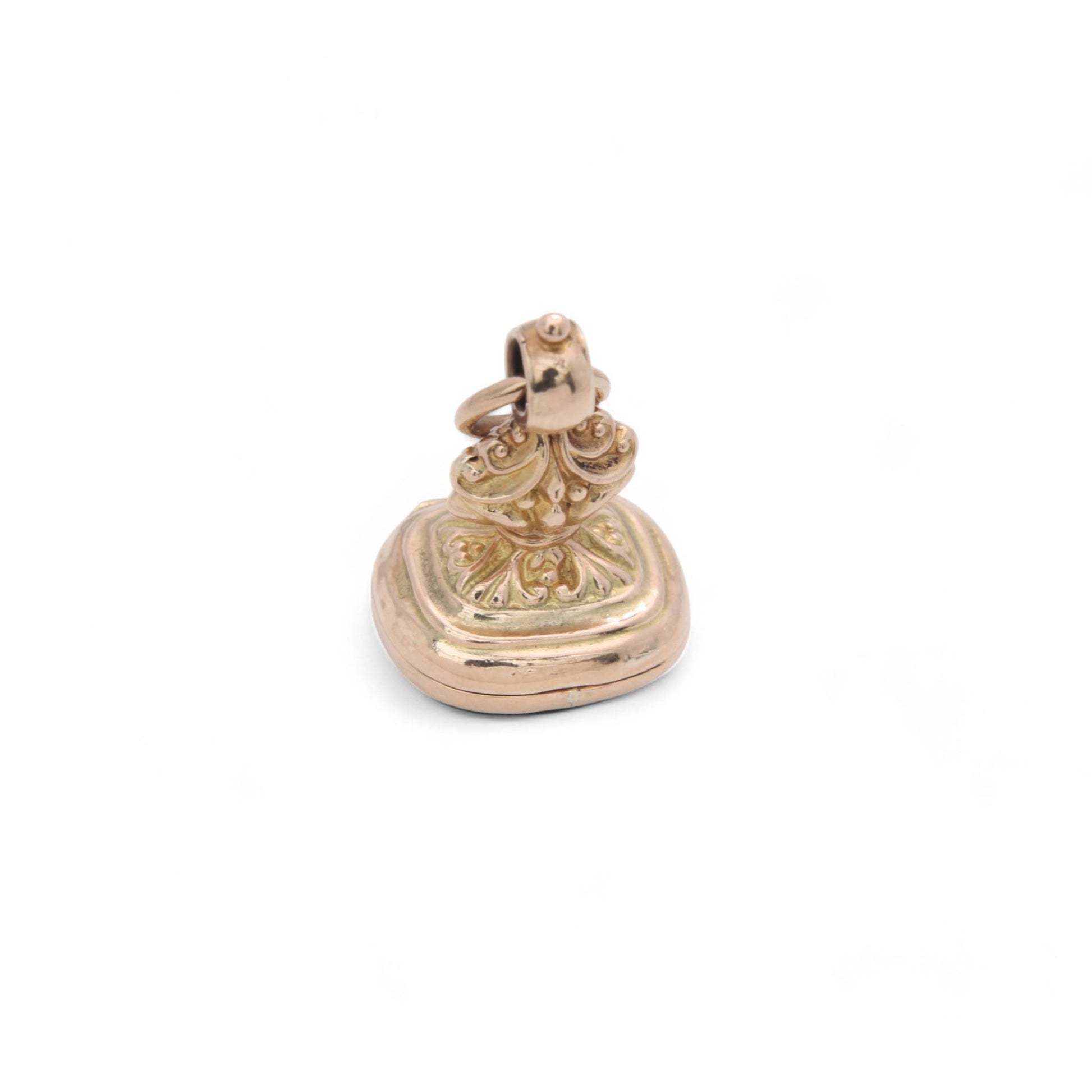 This stunning antique 9ct yellow gold fob, dating to 1910, combines elegance with sentimentality. At the base of the fob, a beautifully polished bloodstone agate. The fob also features a locket compartment at its base, allowing you to store a small keepsake.