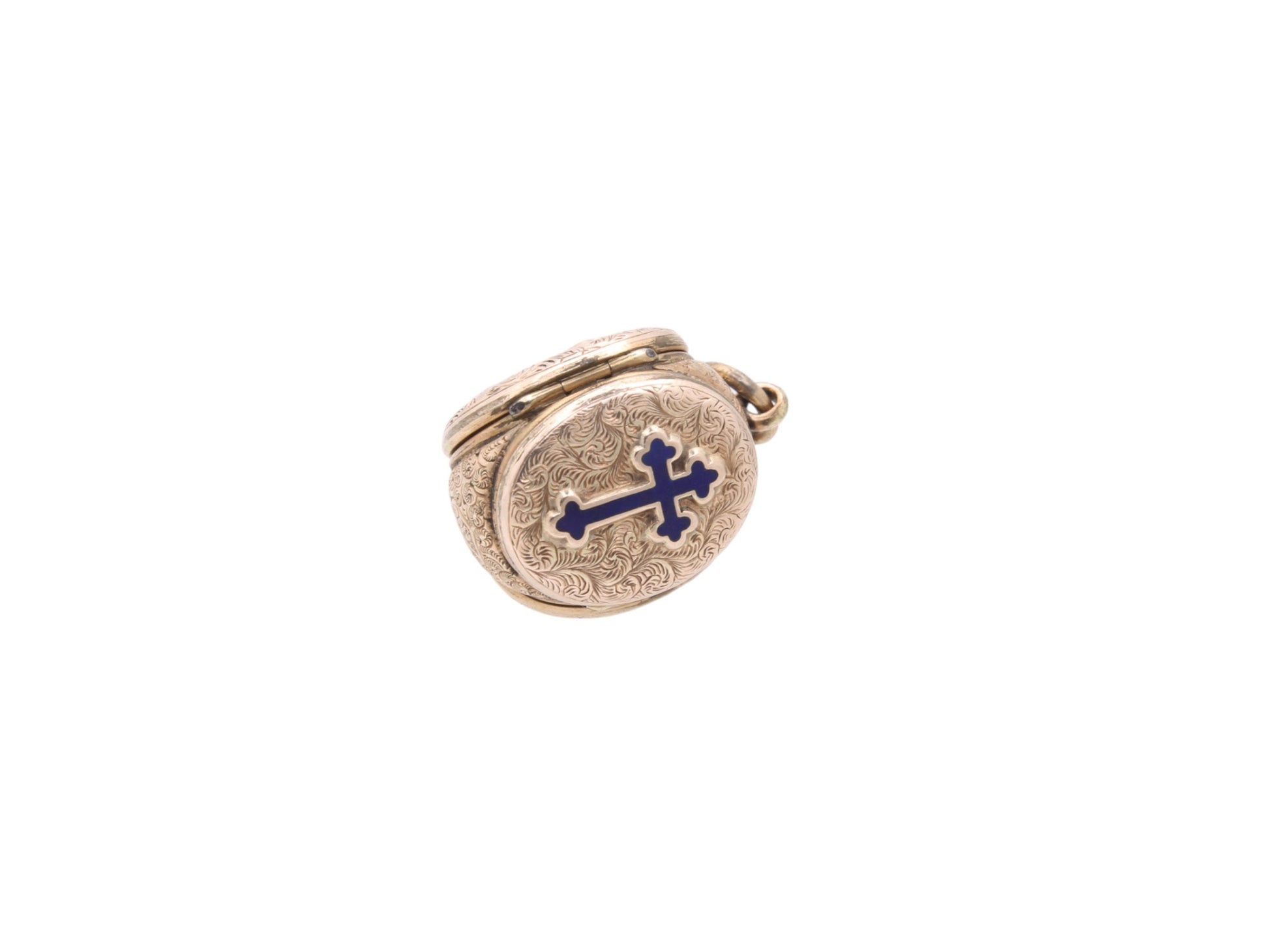 Antique 9ct Gold Blue Enamel Cross Triple Locket Pendant