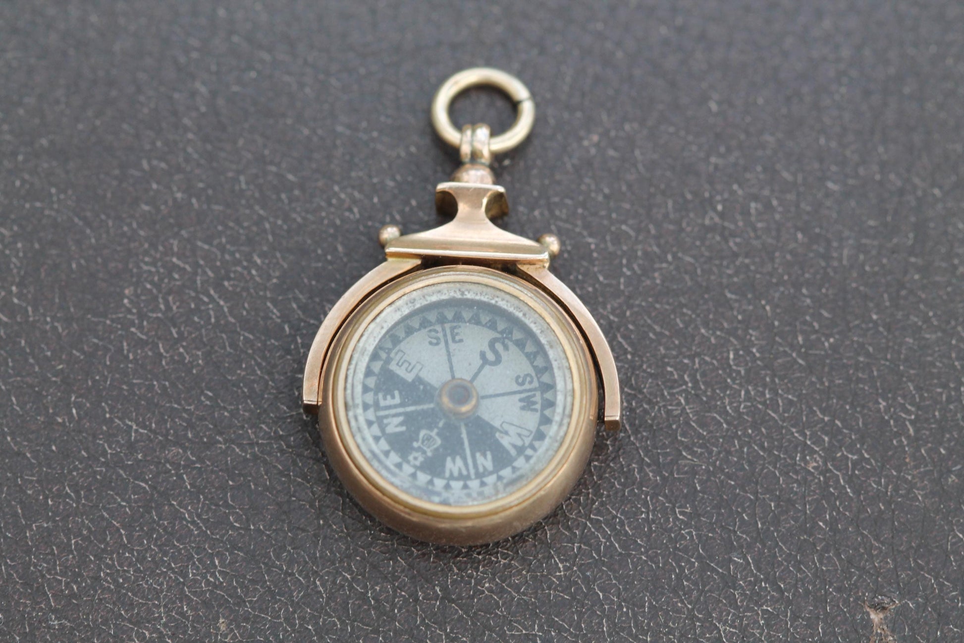 An elegant Edwardian 9ct gold compass spinner pendant dating to around 1913. The front features a rotating compass disc, while the reverse is set with a rich carnelian agate. Crafted in a soft rose gold hue, this versatile piece combines practicality with elegance. In very good condition, it makes a beautiful pendant for a chain or Albert, and a wonderful collector’s piece of Victorian jewellery.