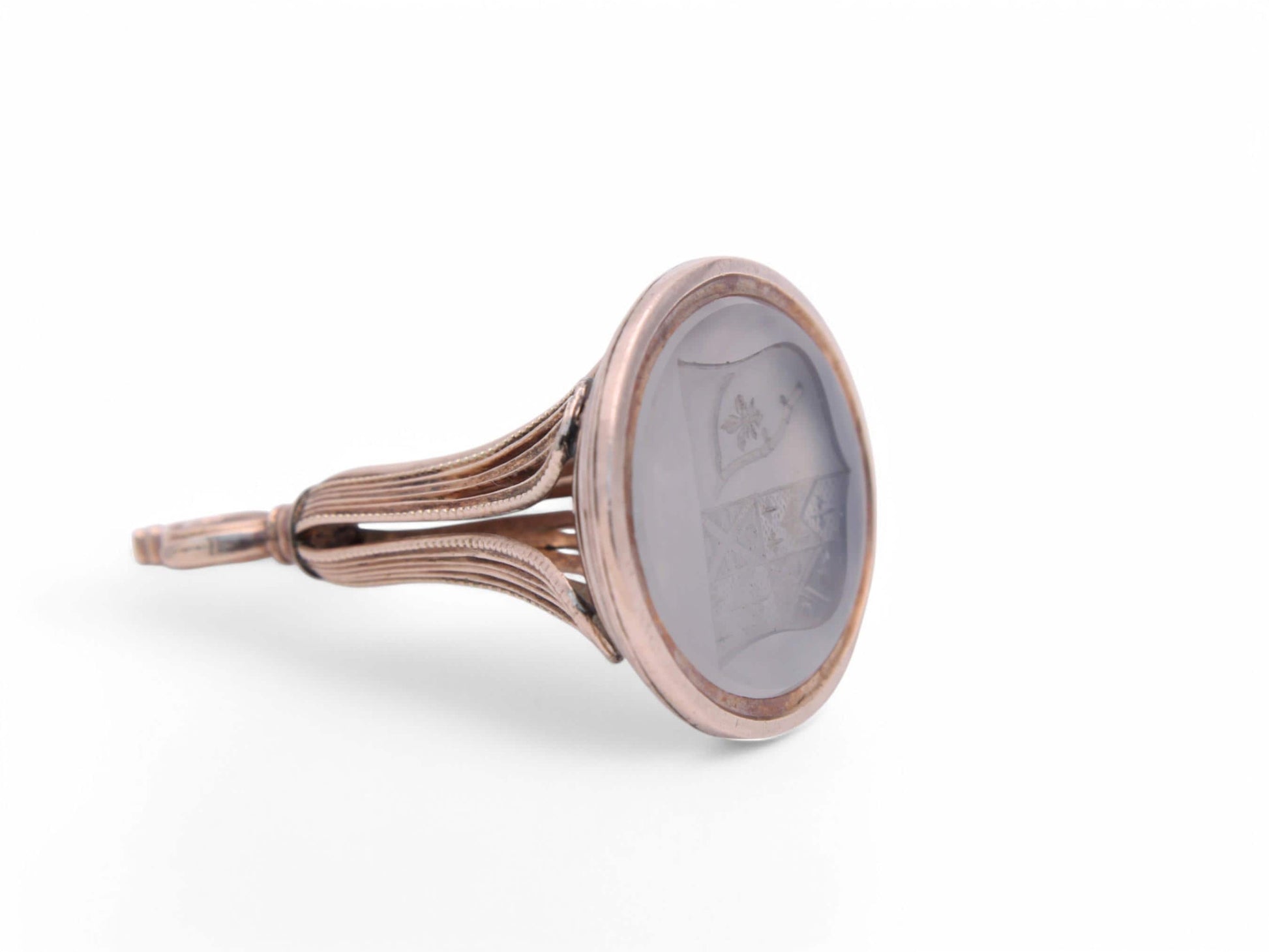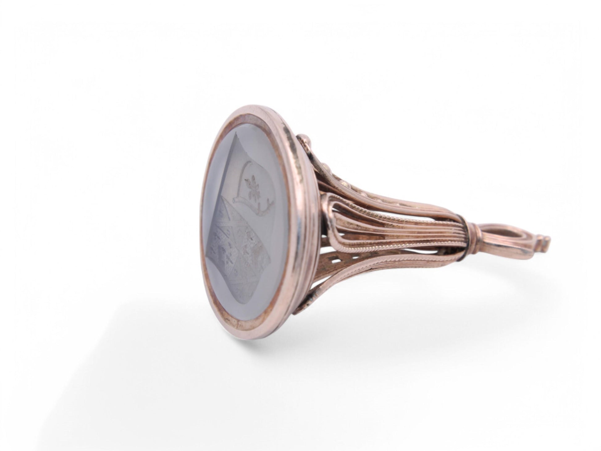 Antique 9ct Gold Chalcedony Intaglio Crested Fob Pendant