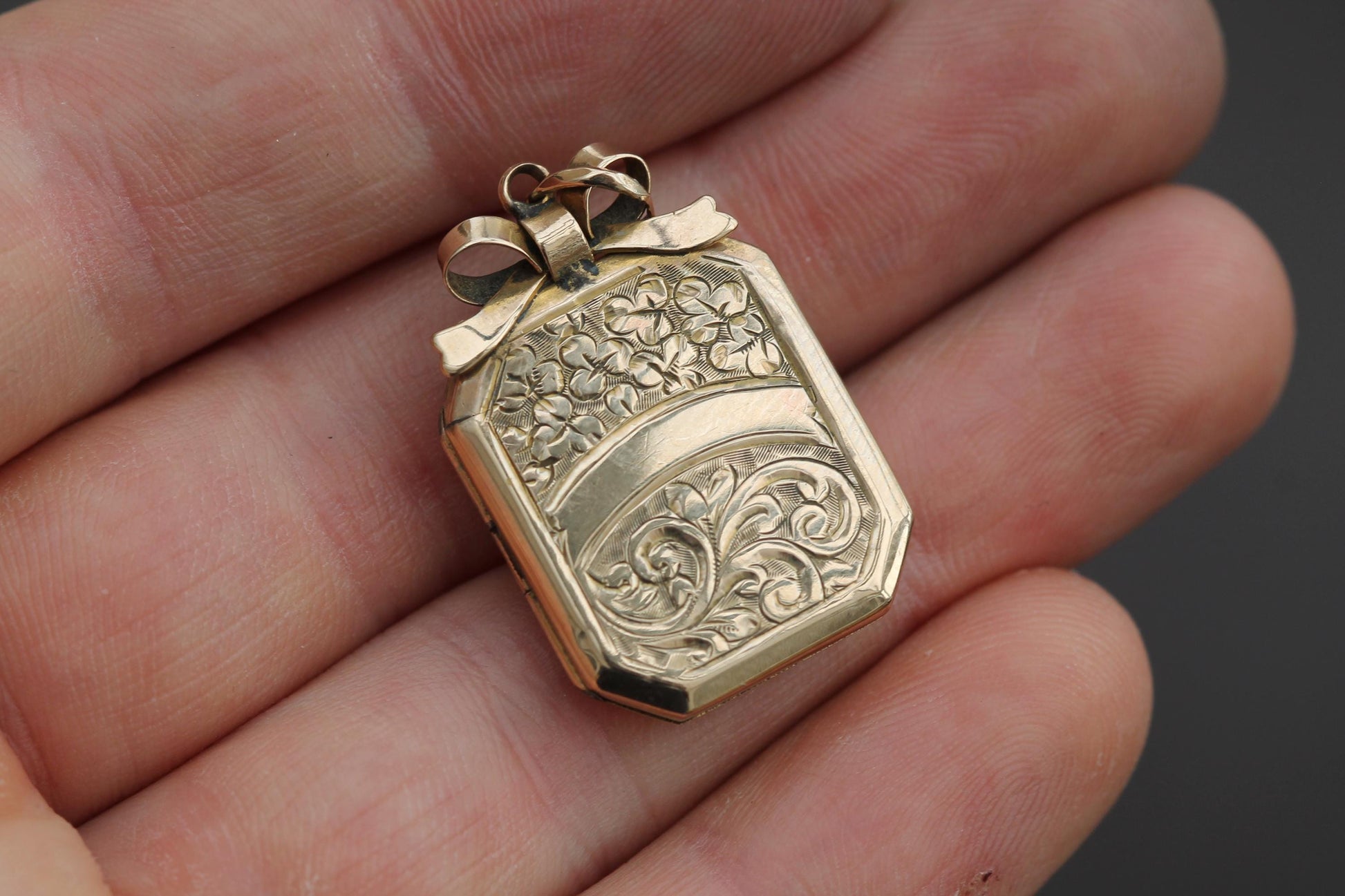 Antique 9ct Gold Chased Decorative Bow Locket