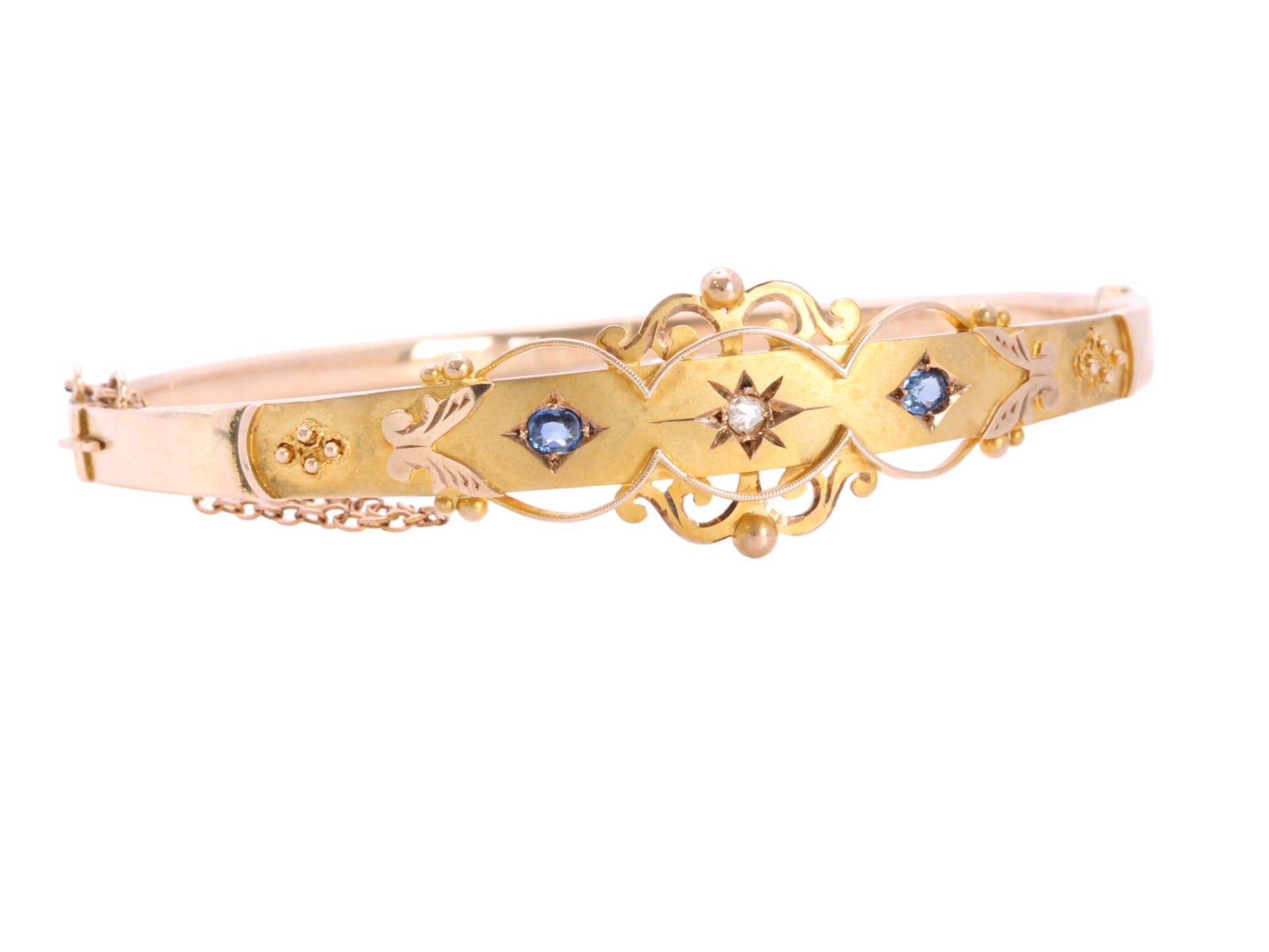 Antique 9ct Gold Diamond Sapphire Bangle, 7"