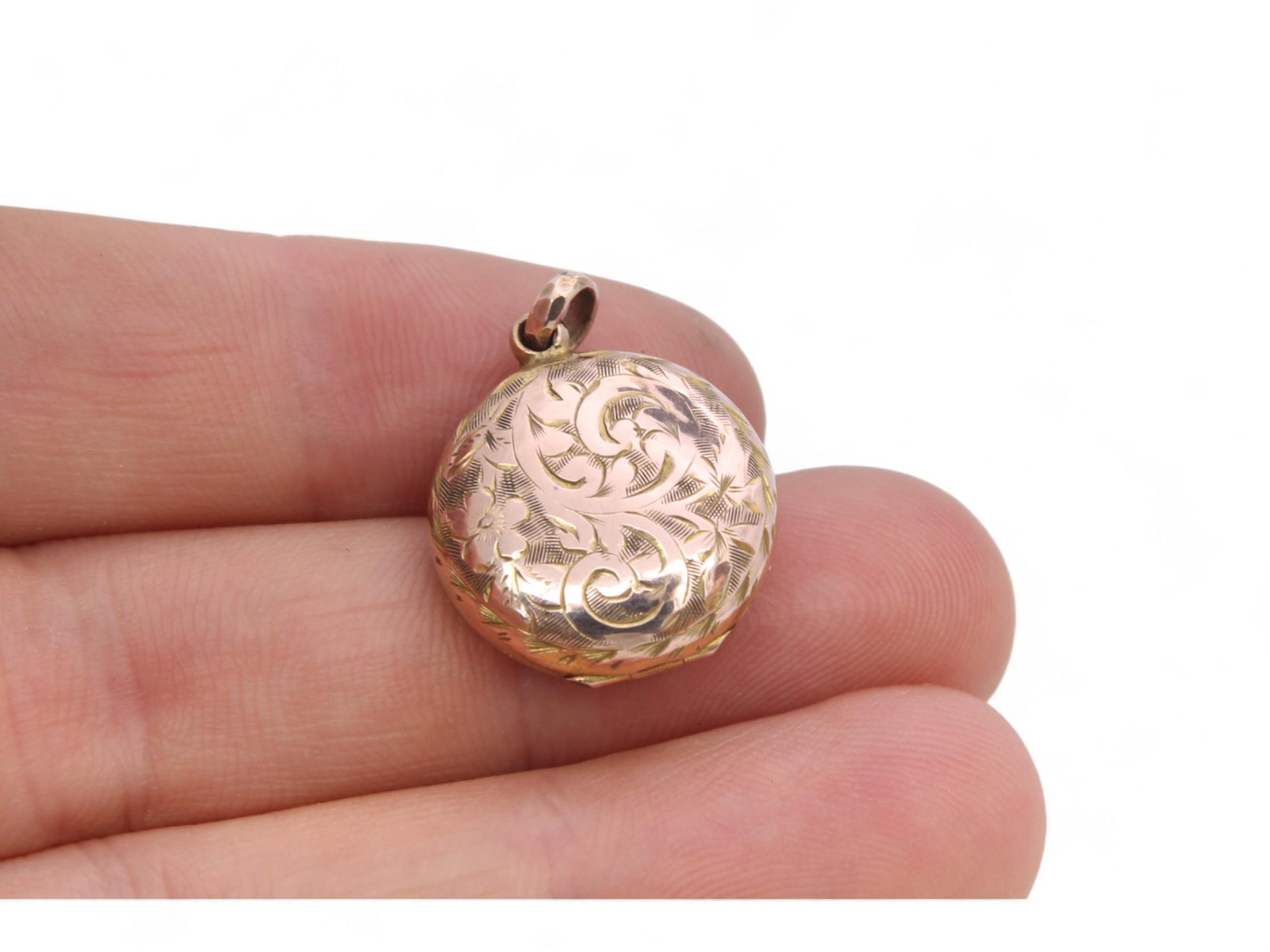 The intricate floral detailing adds elegance and charm to this timeless piece, making it a unique and personal keepsake for storing cherished photos or mementos. The warm, rich glow of the 9ct gold enhances the locket's beauty, making it an ideal accessory for lovers of antique jewellery.