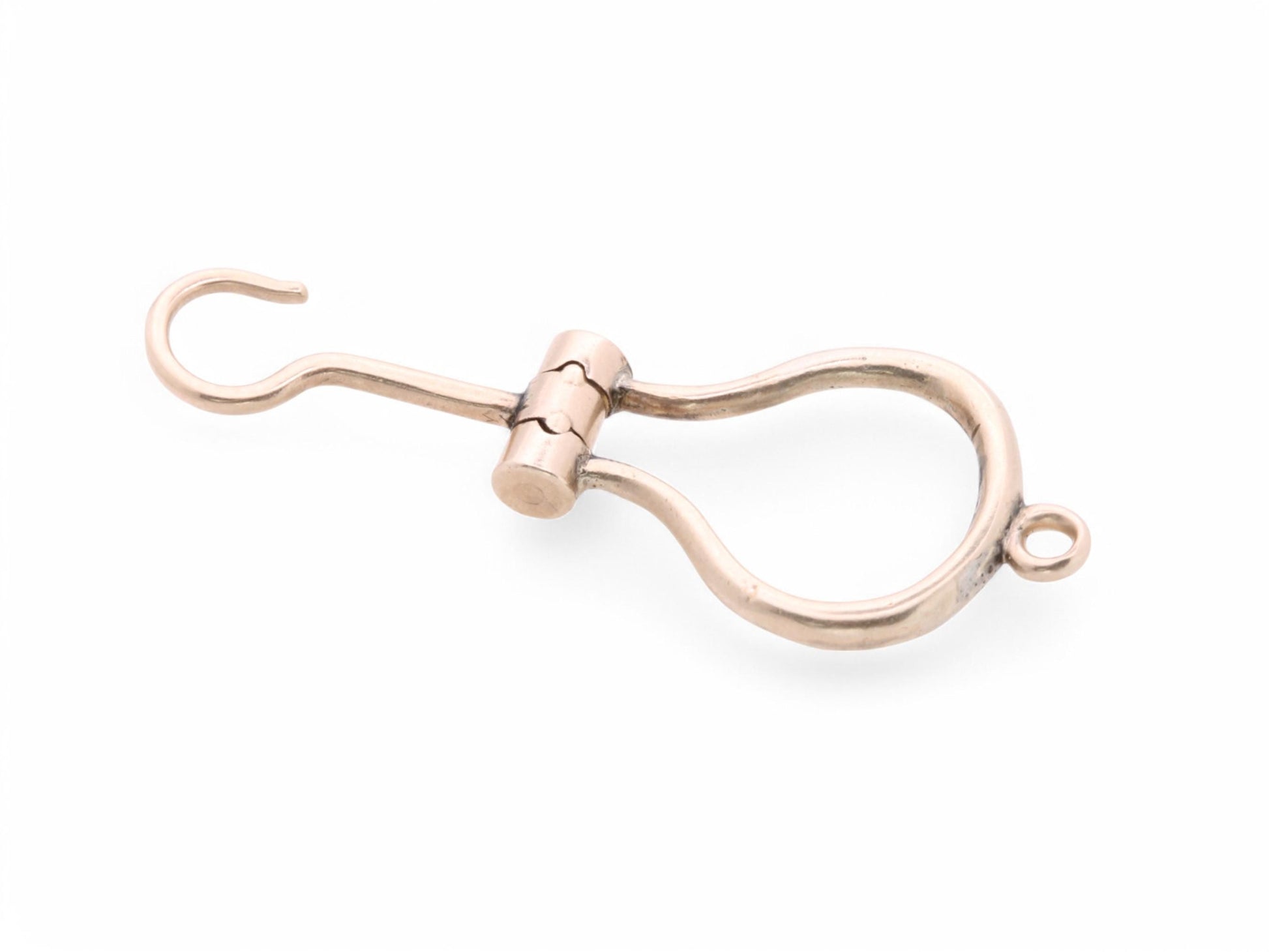 The hook neatly folds into its gold mount, making it a compact and stylish item once carried by the well-dressed Victorian gentleman or lady. Its warm rose gold hue and smooth, polished finish add to its charm.