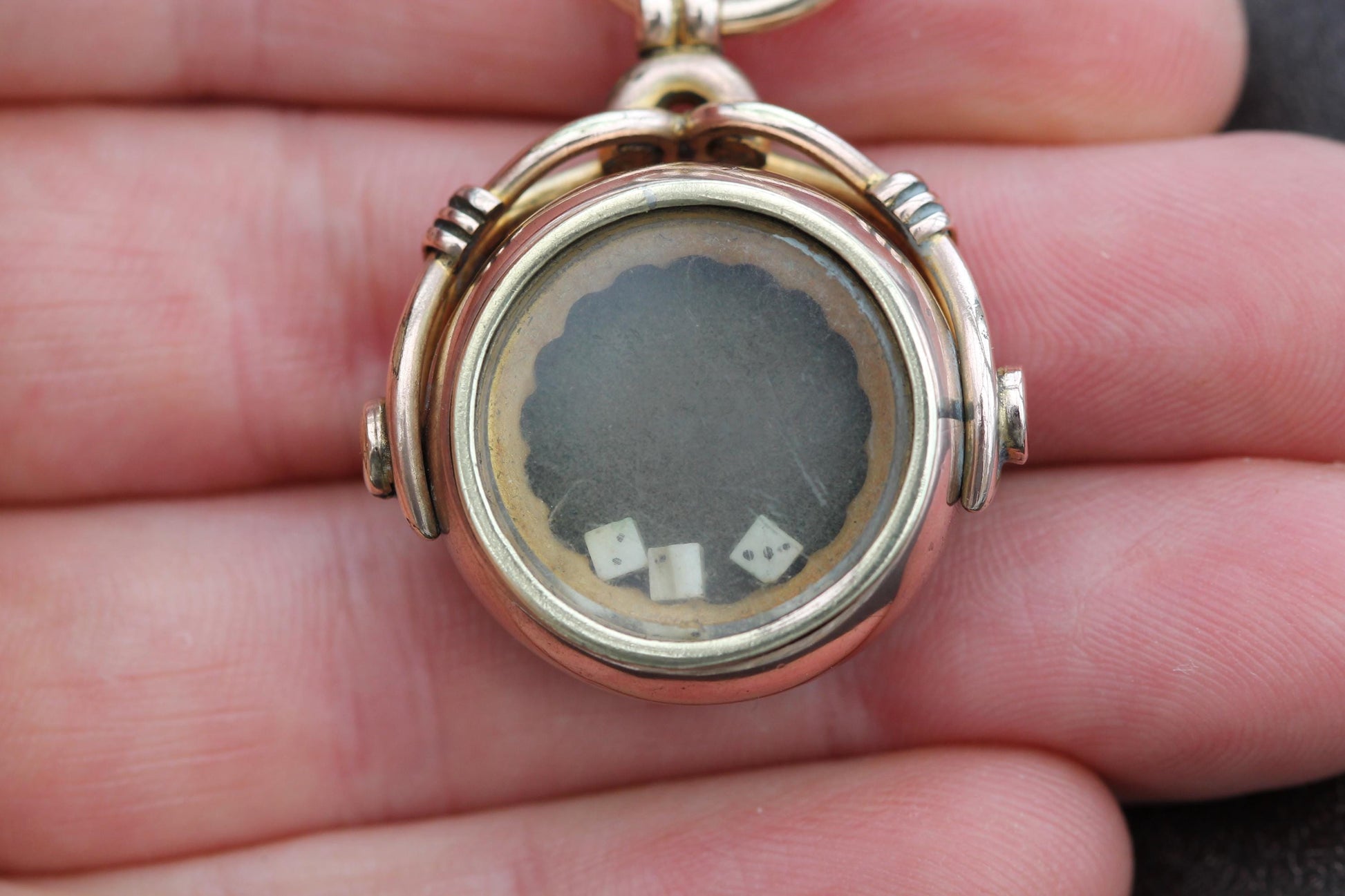 Antique 9ct Gold Gambling Dice Shaker Spinner Pendant