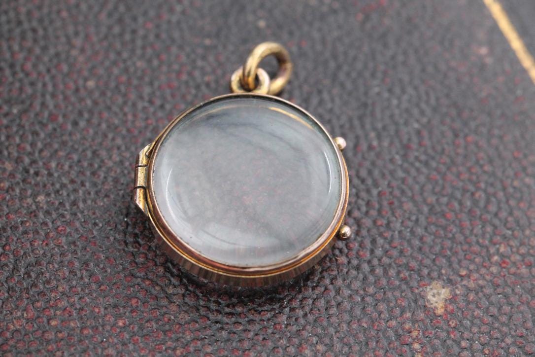 A charming antique 9ct gold glass locket, featuring glass panels to both sides that allow a cherished keepsake or photograph to be displayed and protected. The locket is in lovely condition, with both glass panels free from damage and opening and closing securely as intended.