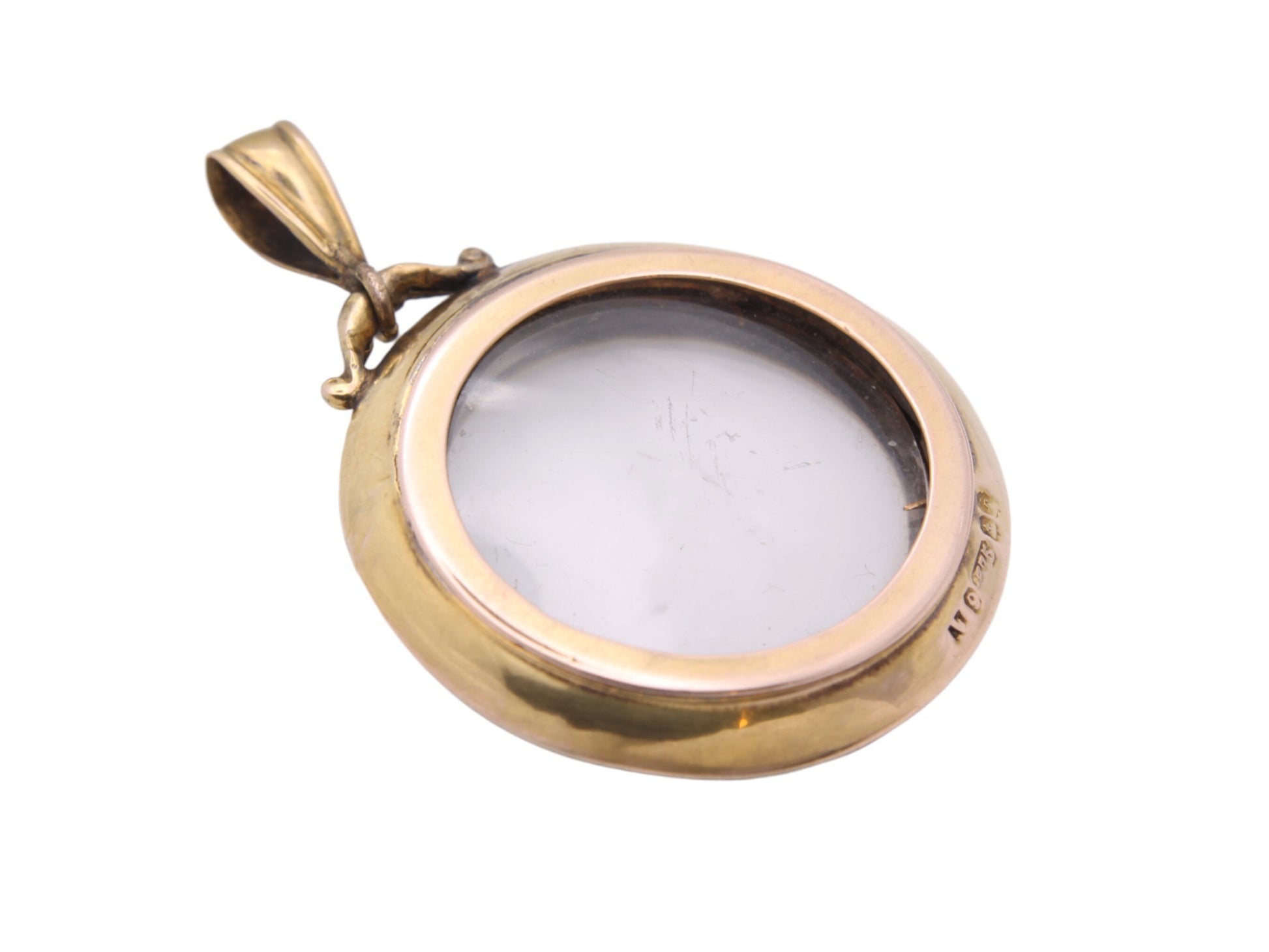 An antique 9ct yellow gold glass locket pendant dating to the Edwardian era, 1907.