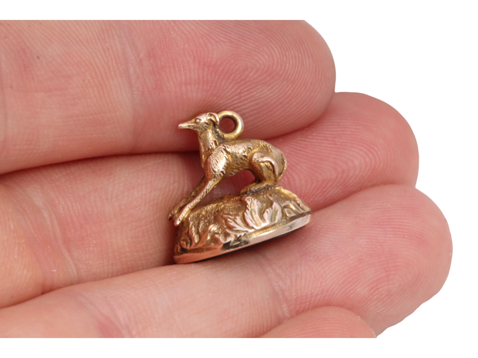 Antique 9ct Gold Greyhound Dog Pendant Fob