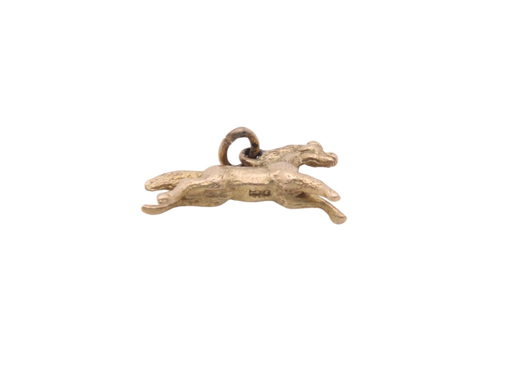 Presenting a charming Antique 9ct gold horse charm, perfect for equestrian enthusiasts and lovers of fine jewellery alike. This exquisite piece captures the majestic beauty and dynamic spirit of a show jumping horse, expertly crafted to showcase intricate detailing and lifelike movement. The horse's graceful stance is beautifully rendered in rich 9ct gold, adding a touch of elegance and timeless appeal to this delightful charm.