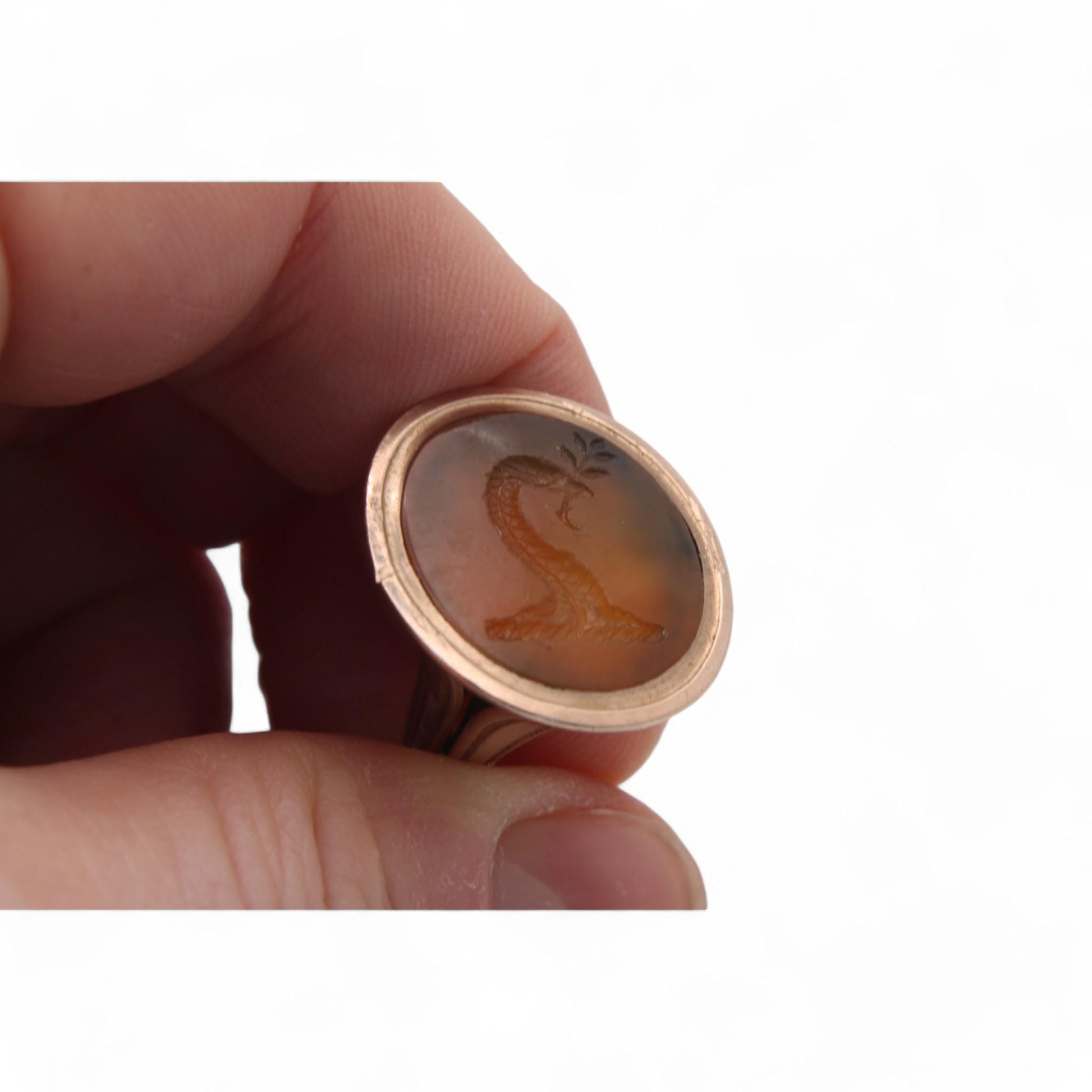 Antique 9ct Gold Intaglio Snake Crest Pendant