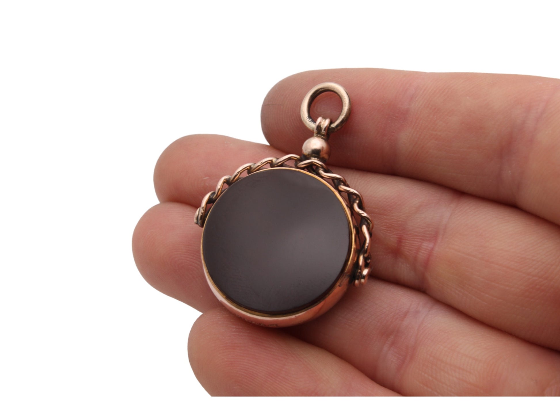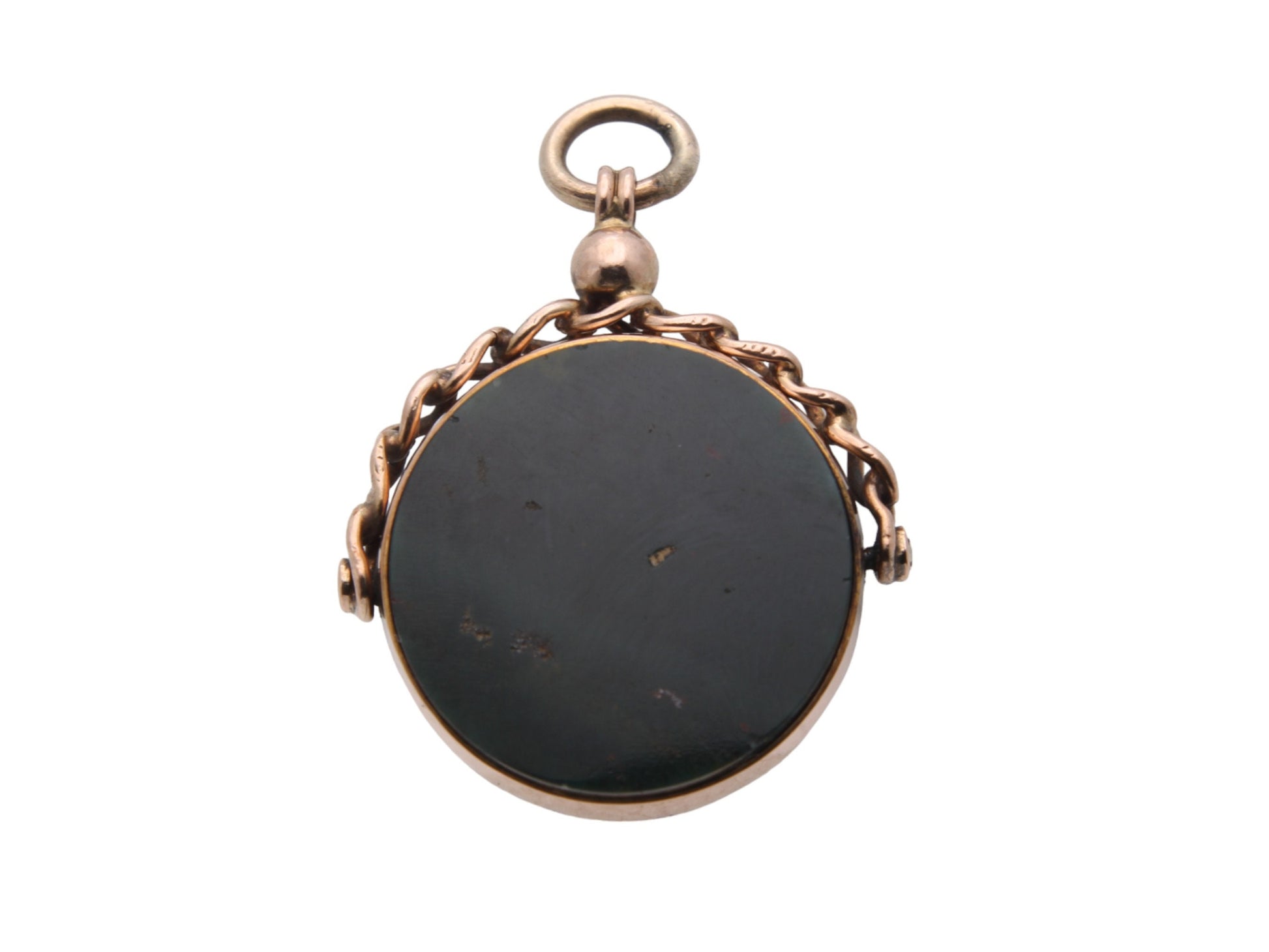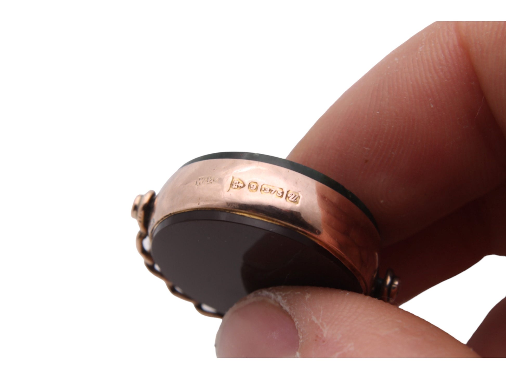 Antique 9ct Gold Large Bloodstone Carnelian Spinner Pendant, 1920