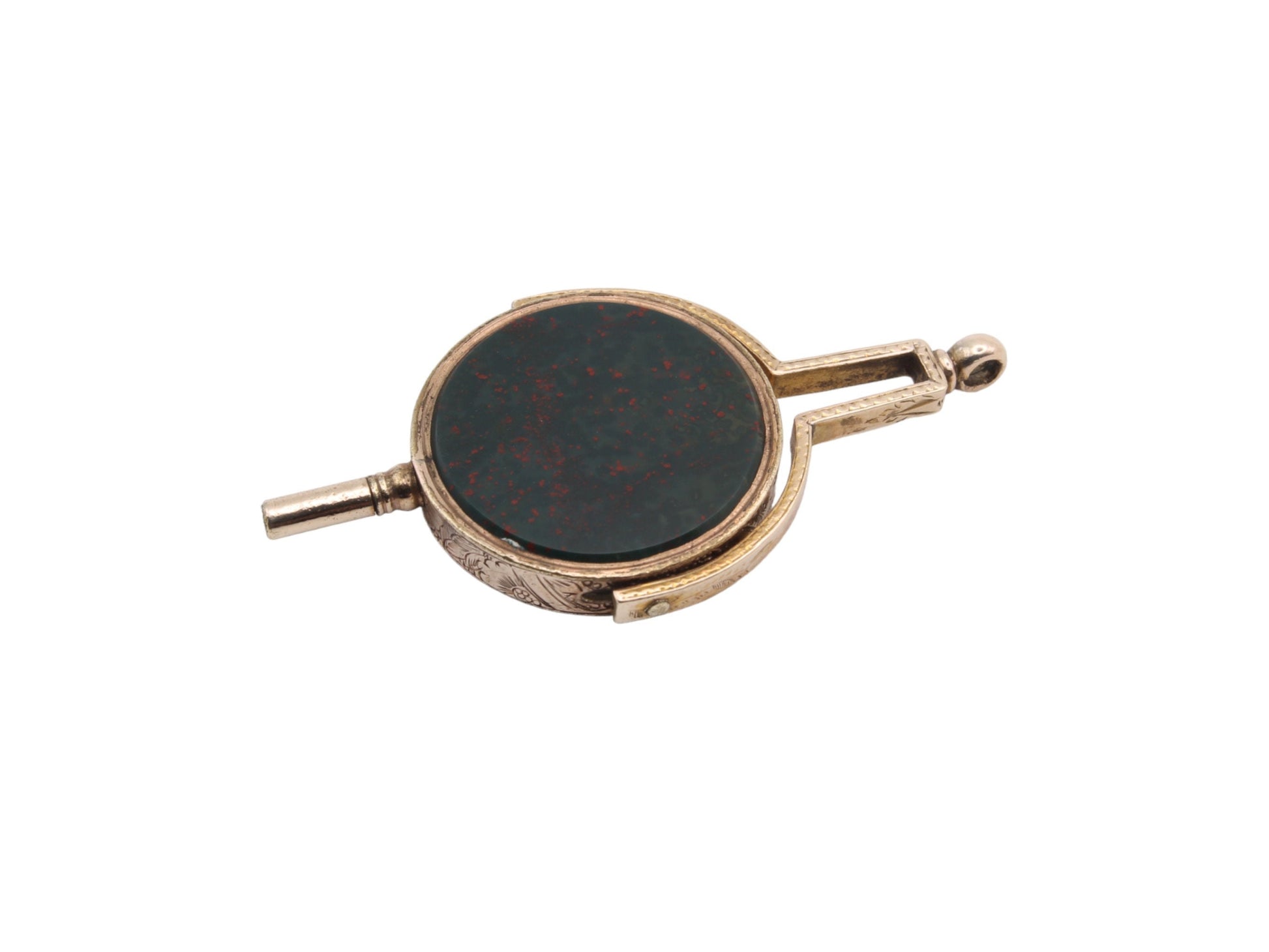 Antique 9ct Gold Large Carnelian Bloodstone Watch Key Pendant
