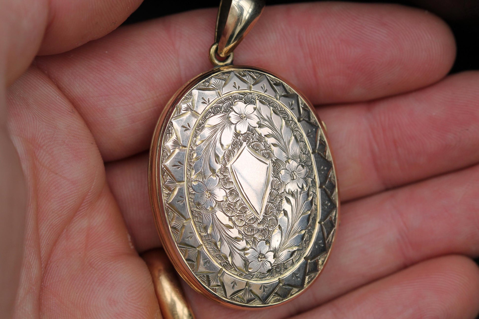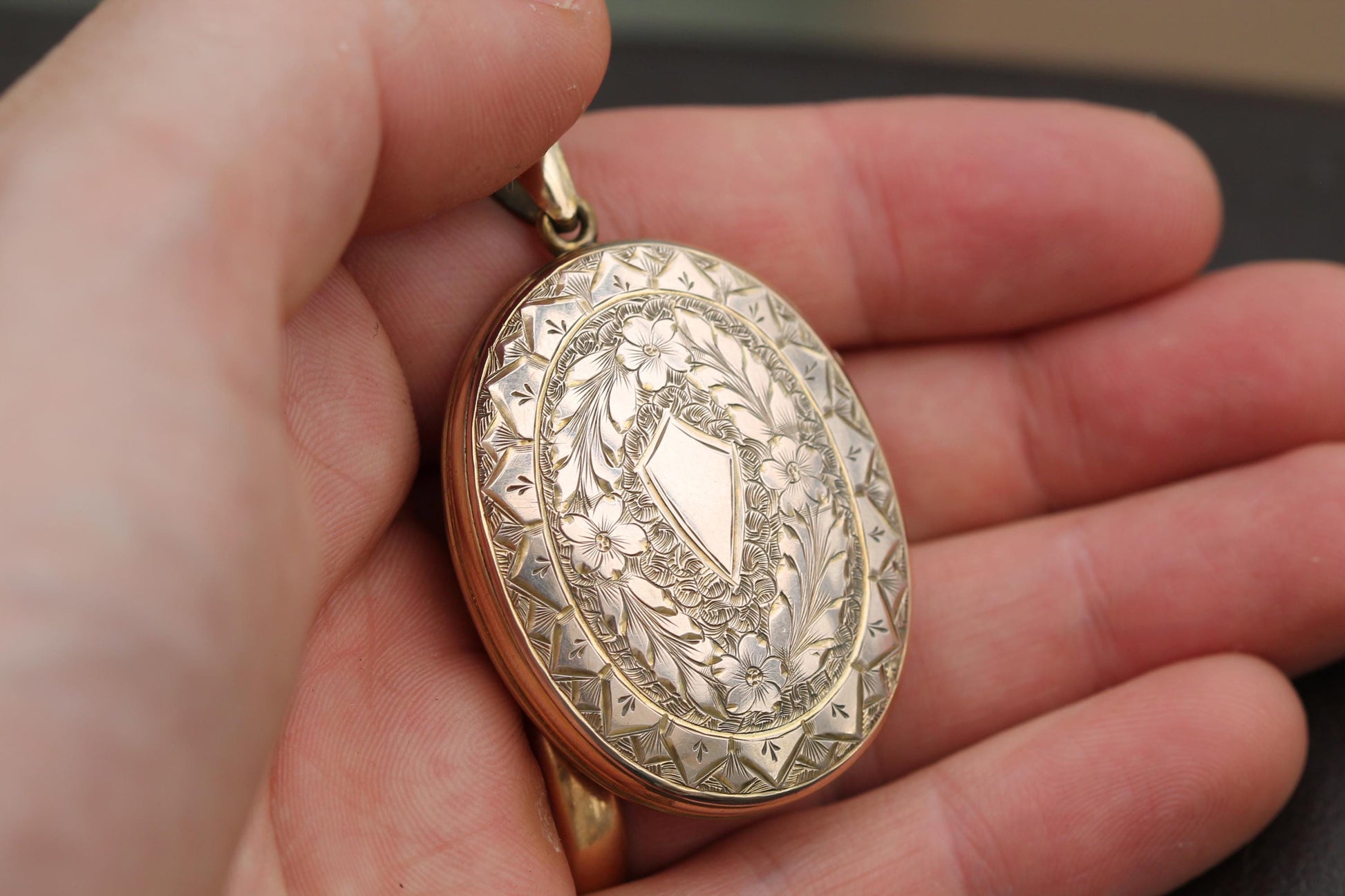 Antique 9ct Gold Large Chased Forget Me Not Locket