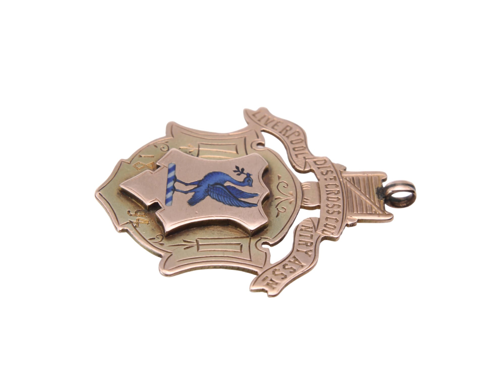 Antique 9ct Gold Liver Bird Crest Enamel Pendant