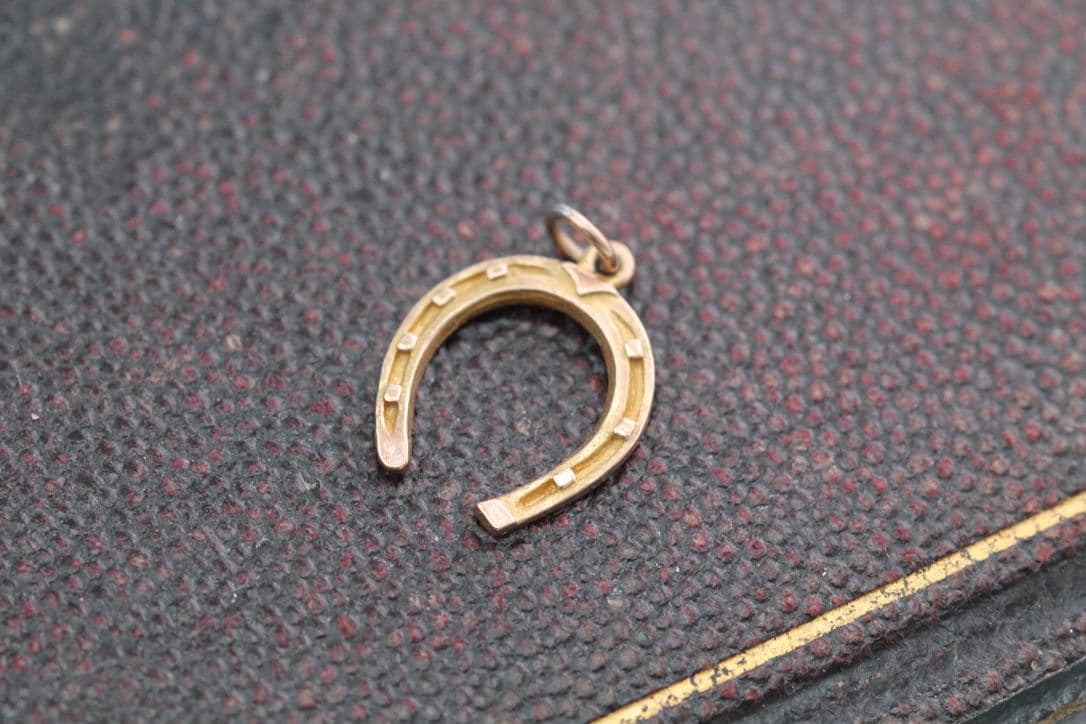 Antique 9ct Gold Lucky Horseshoe Pendant Charm
