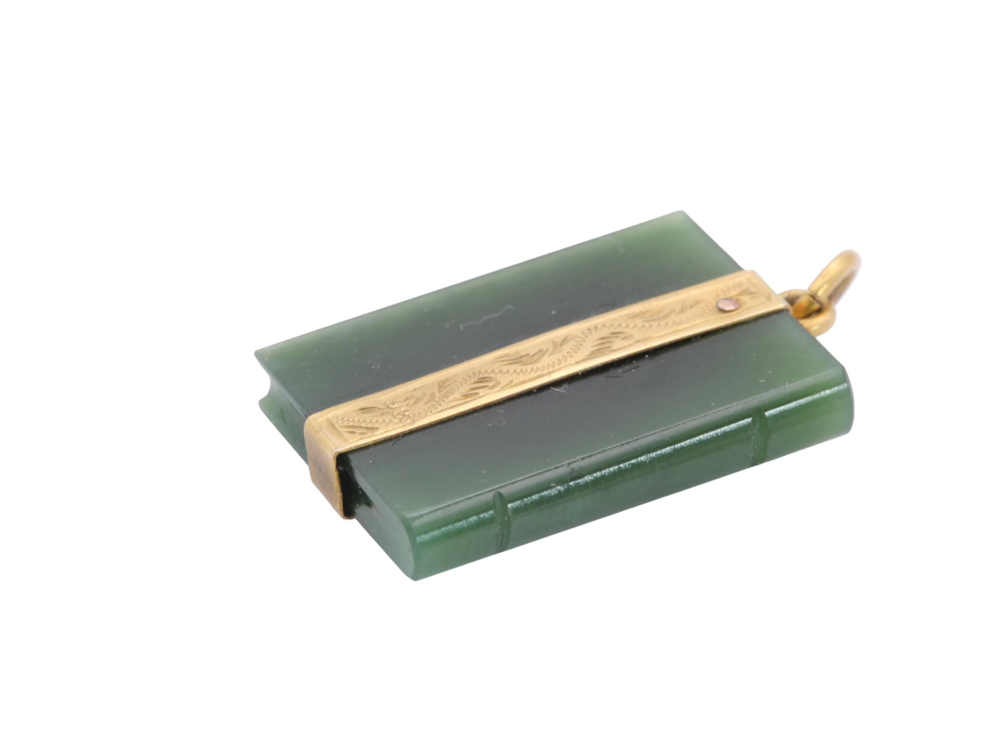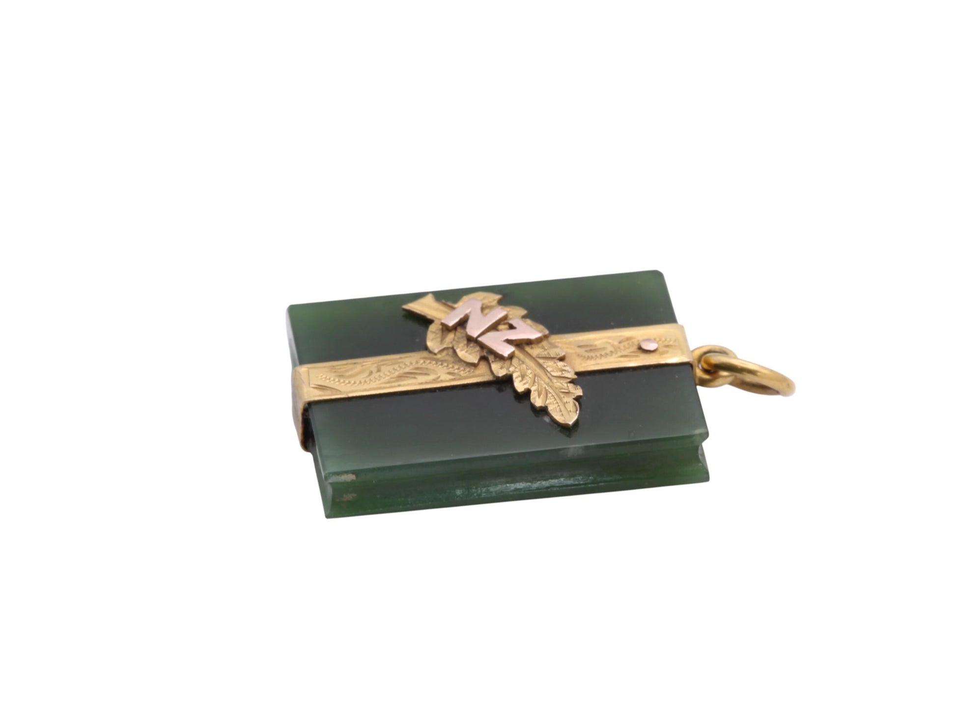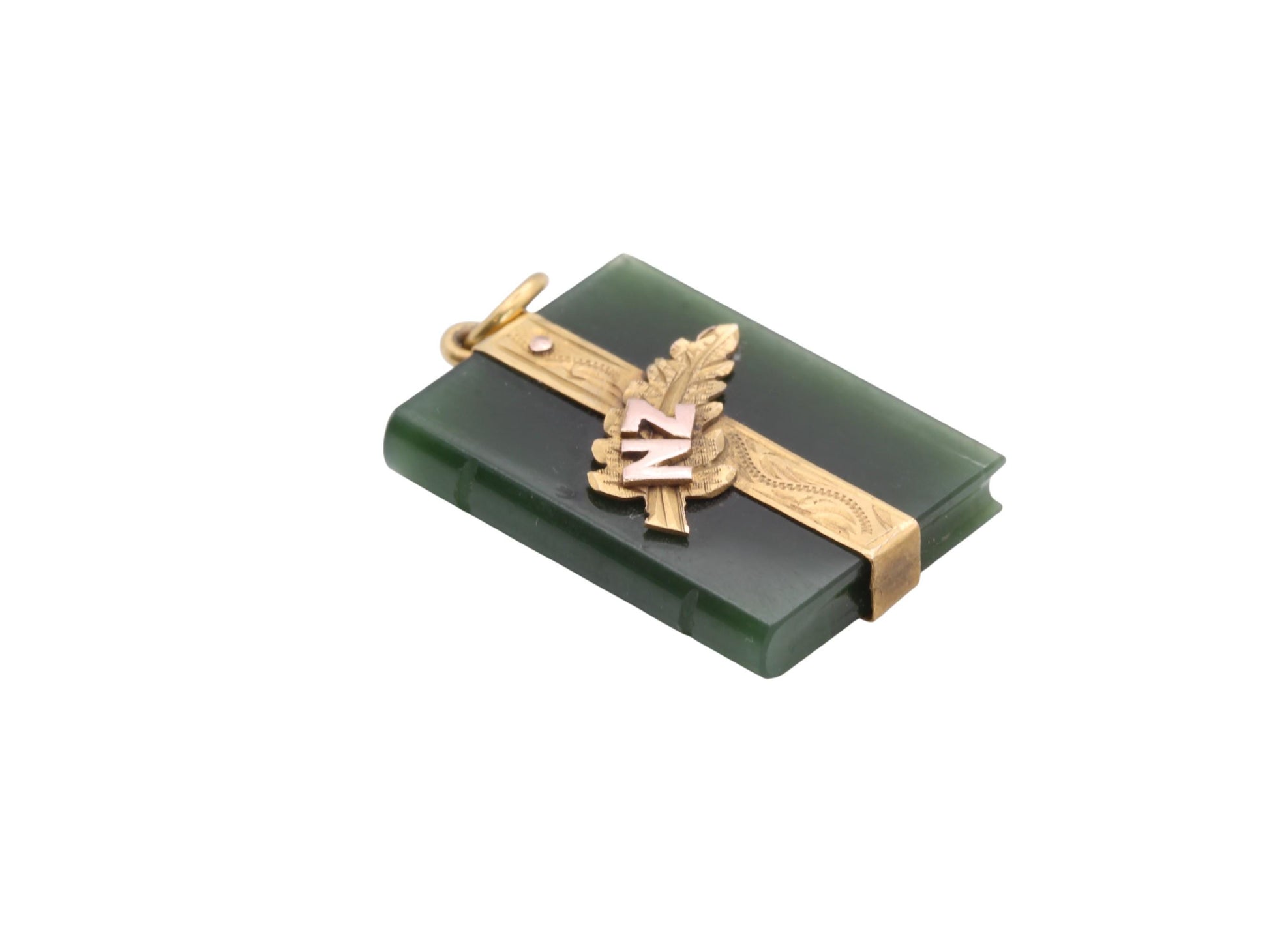 Antique 9ct Gold New Zealand Nephrite Book Pendant