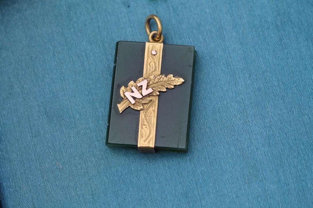 The front is further decorated with a New Zealand leaf motif and the letters “NZ” at the top, giving the pendant strong national and historical character. Presented in brilliant condition, this is a rare and thoughtfully made piece, combining skilled carving with elegant goldwork. A charming and highly collectible Victorian pendant.