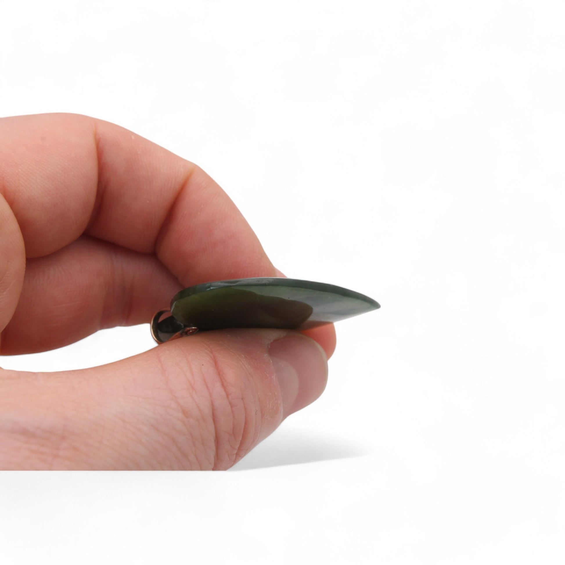 Mounted with a 9ct gold jump ring, the pendant has a classic design that allows the nephrite to be the focal point. Whether worn alone or paired with your favorite chain, this pendant is perfect for adding a touch of sophistication and heritage to any outfit.