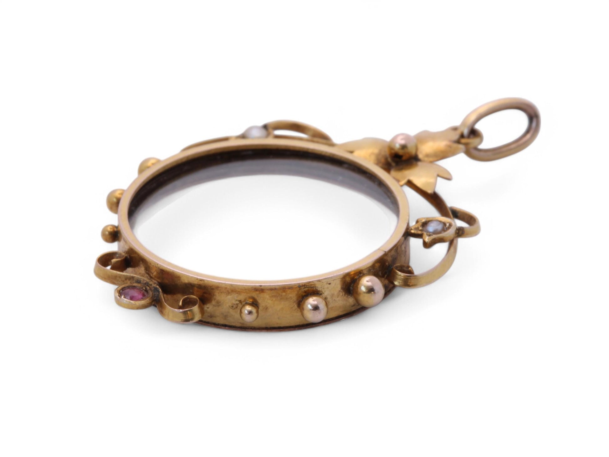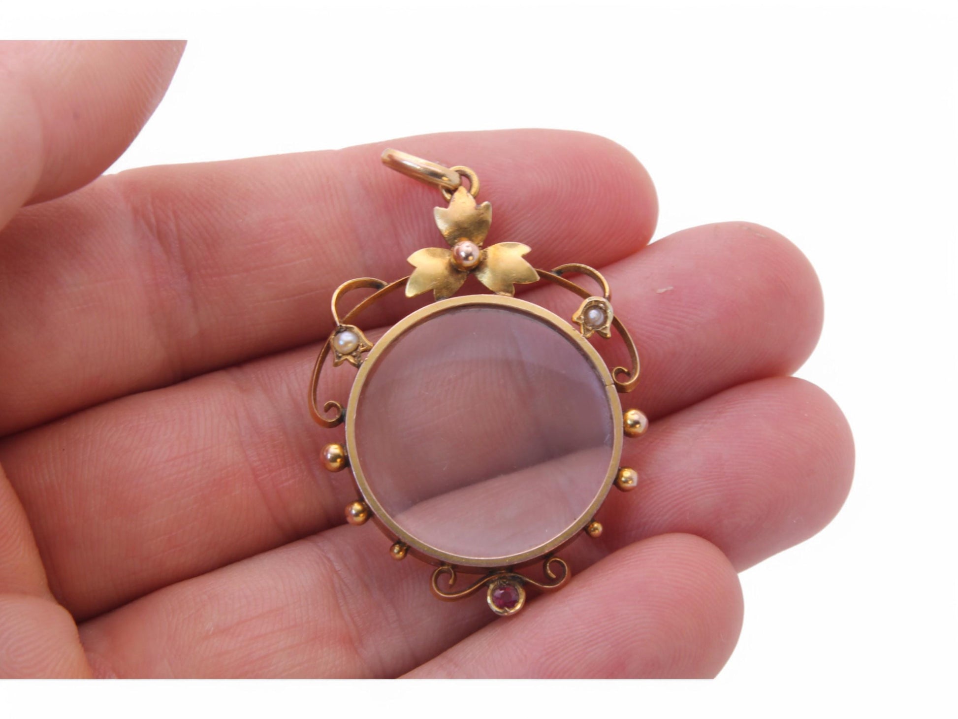 Antique 9ct Gold Pearl & Ruby Open Face Locket