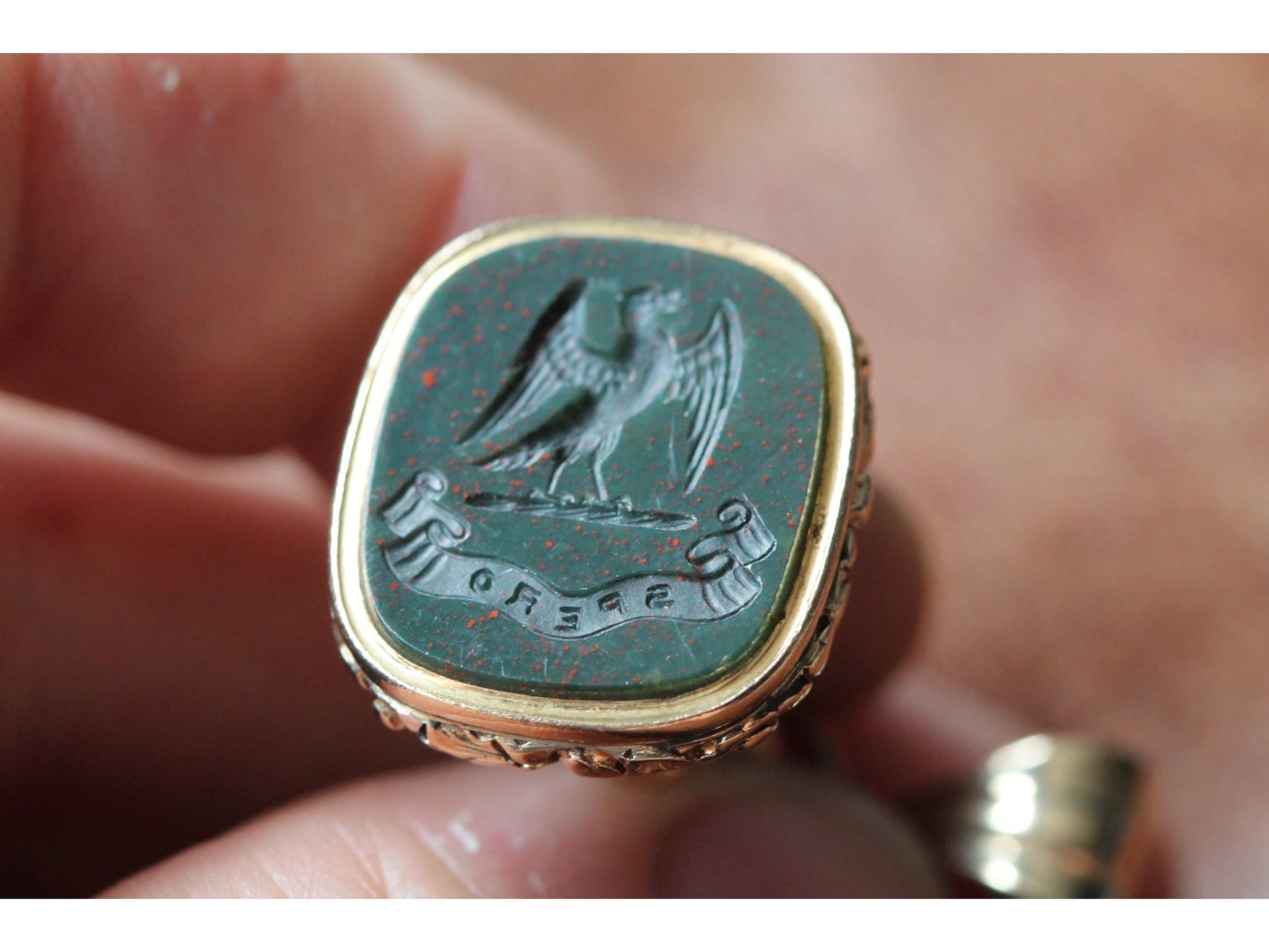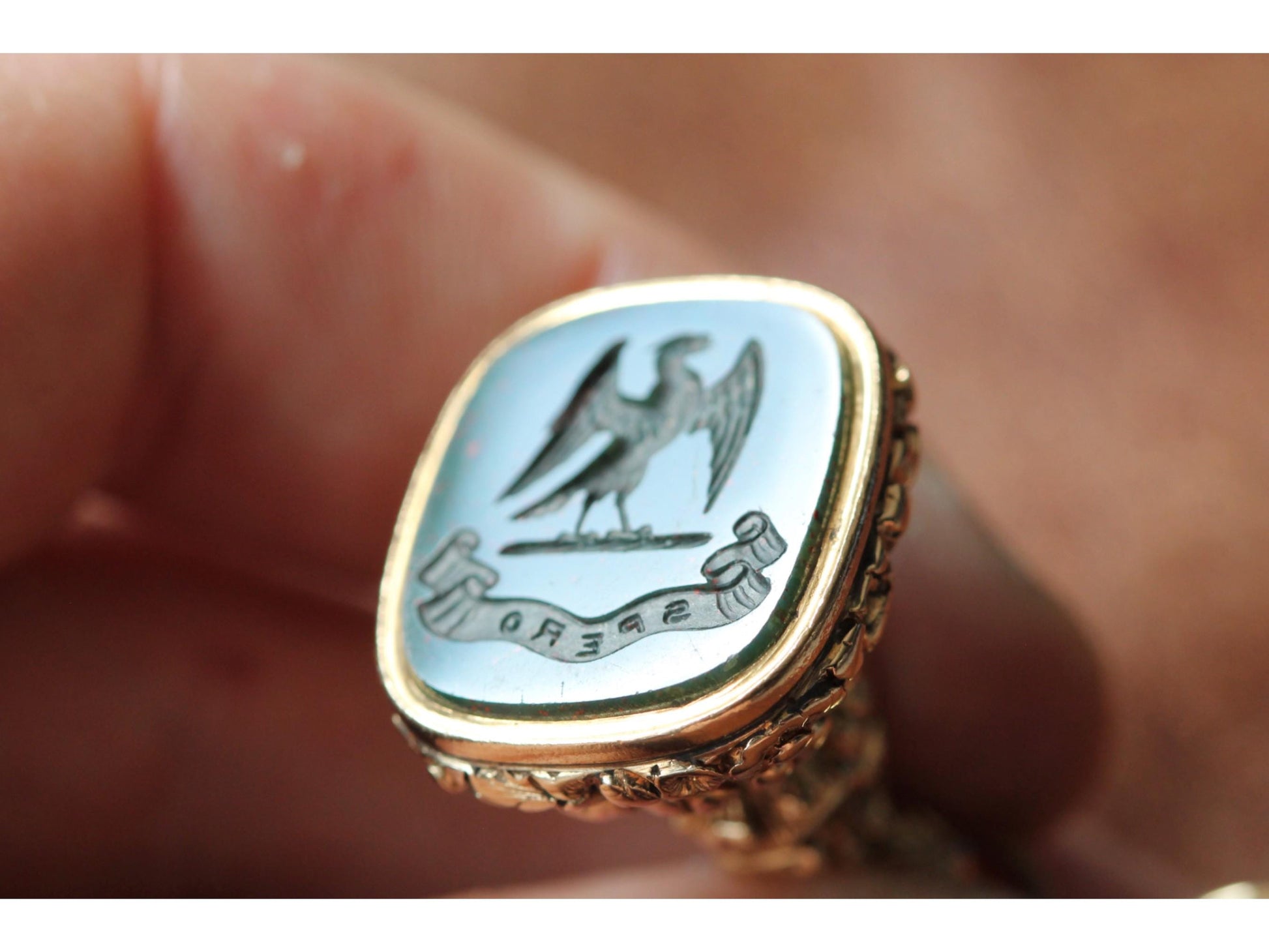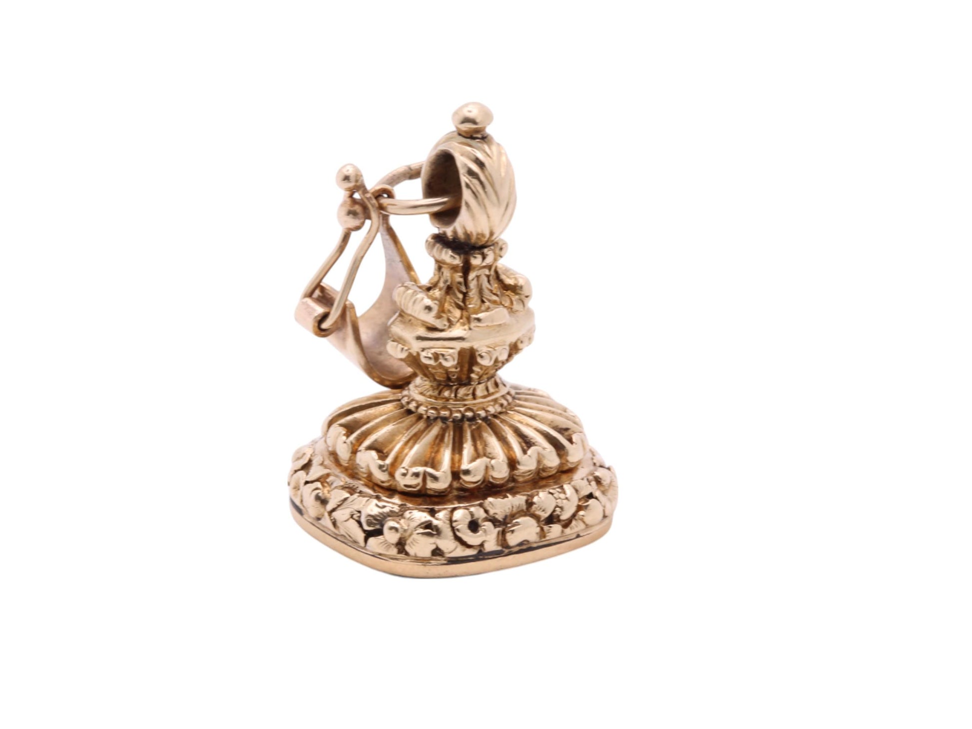 Antique 9ct Gold Phoenix "I Hope" Intaglio Bloodstone Pendant Seal