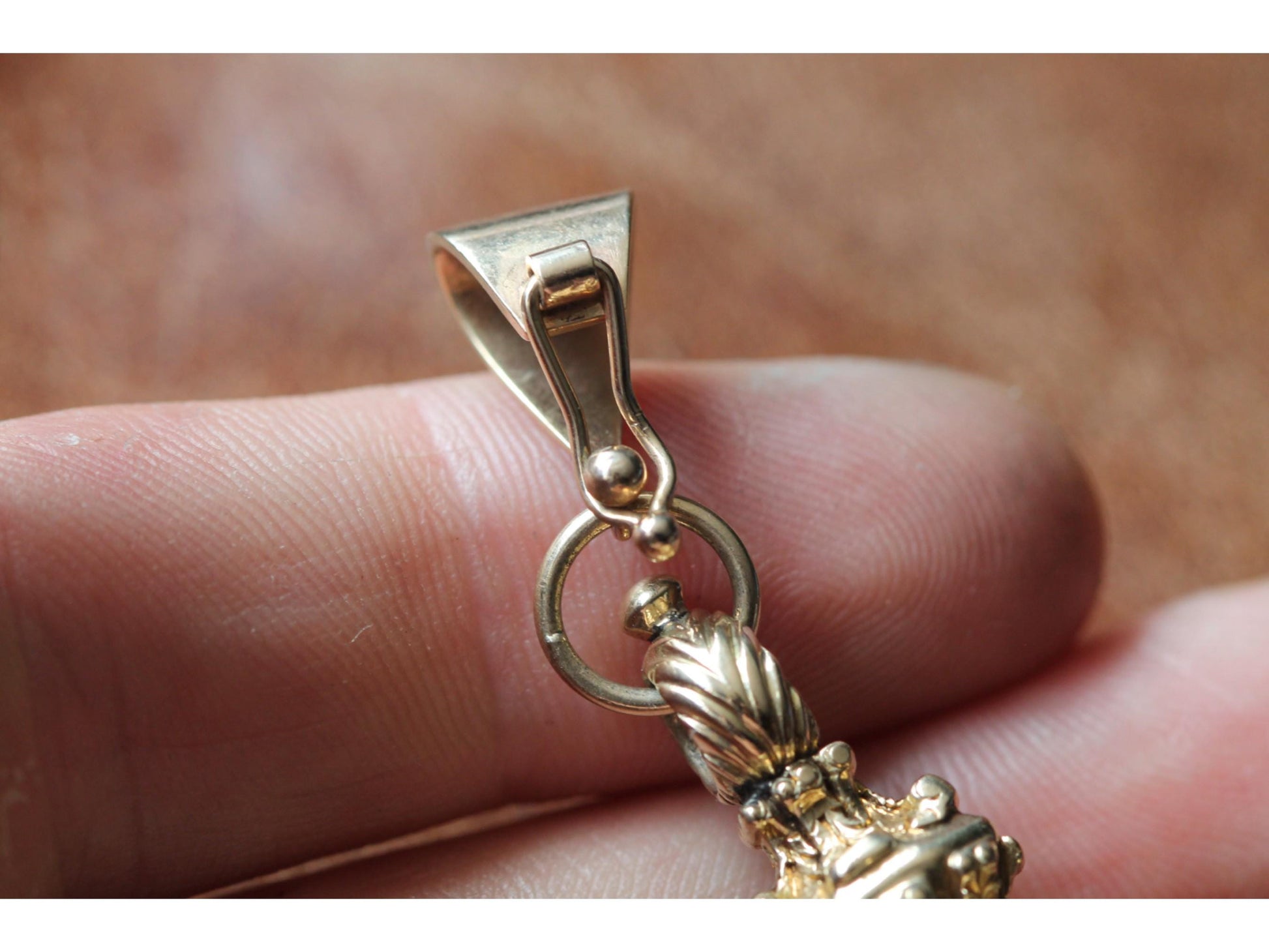 It is fitted with a practical gold clasp that can be unclipped, allowing easy attachment to chains, fobs, or charm bracelets. A meaningful and beautifully crafted piece of antique jewellery with deep sentiment.