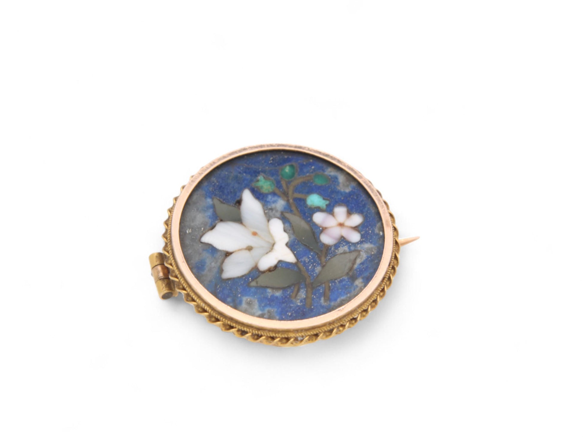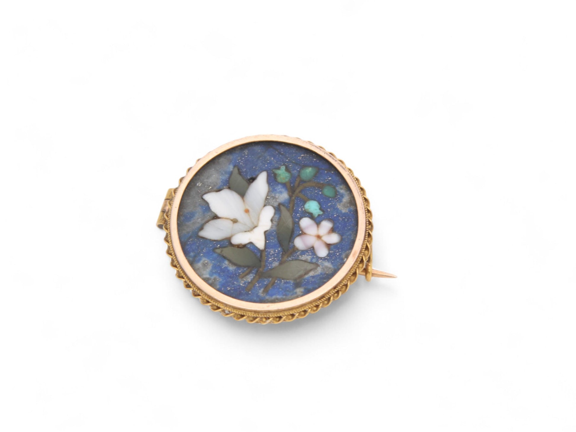 Antique 9ct Gold Pietra Dura Flower Brooch