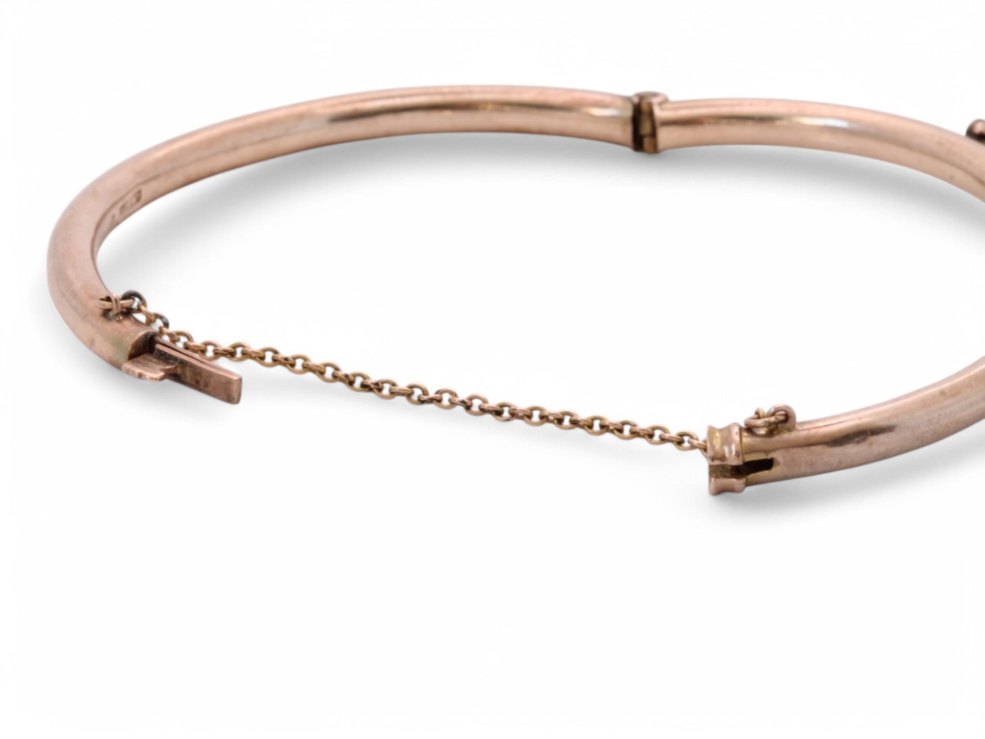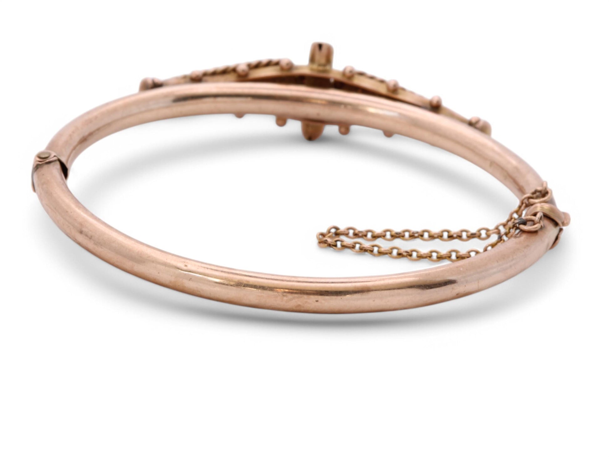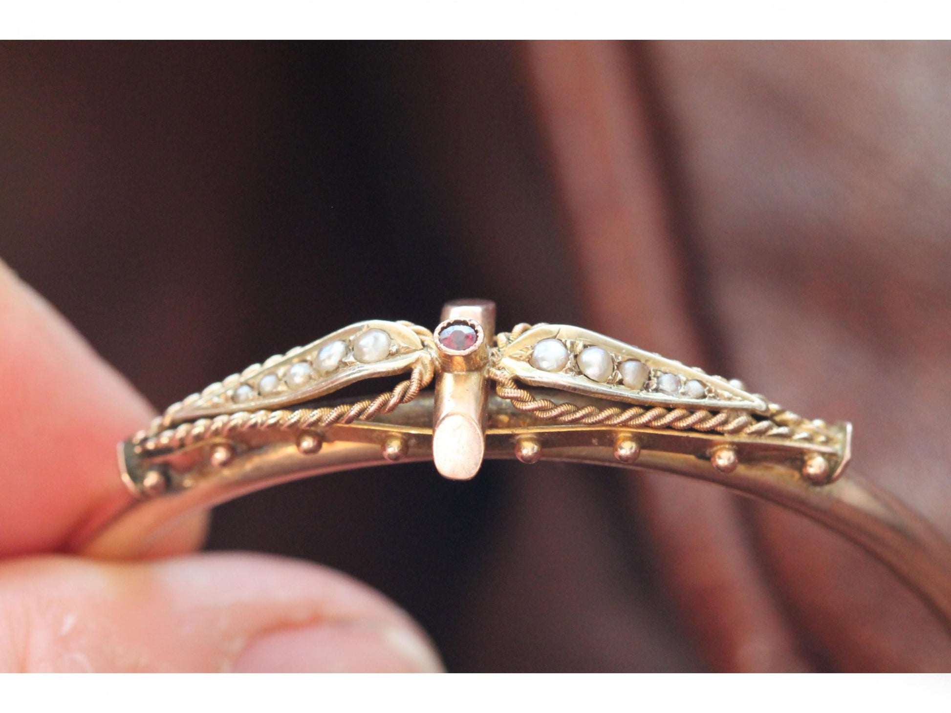 Antique 9ct Gold Ruby Pearl Bangle, 6"