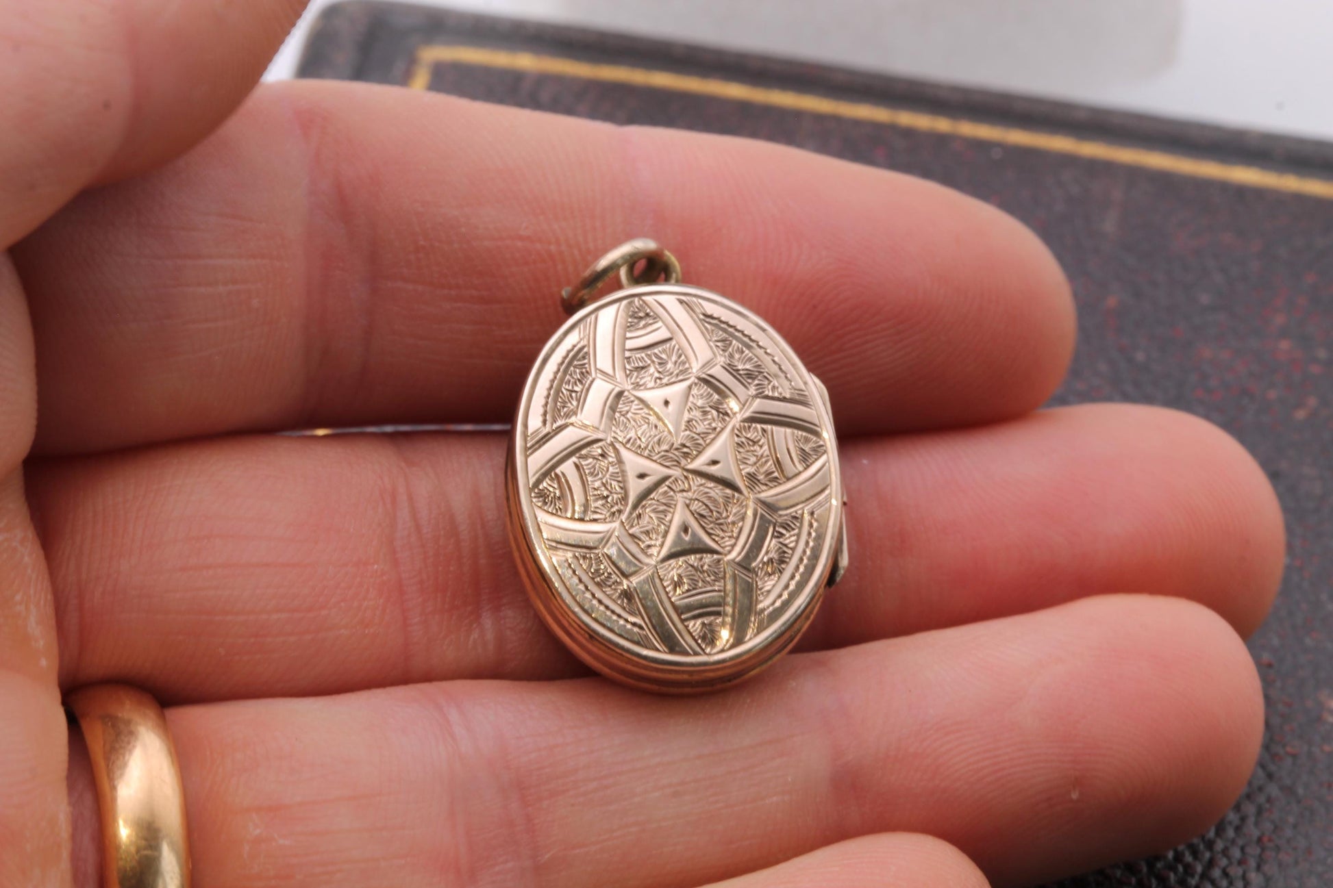 The locket is unmarked however tests as 9ct gold on the shield and back panel.