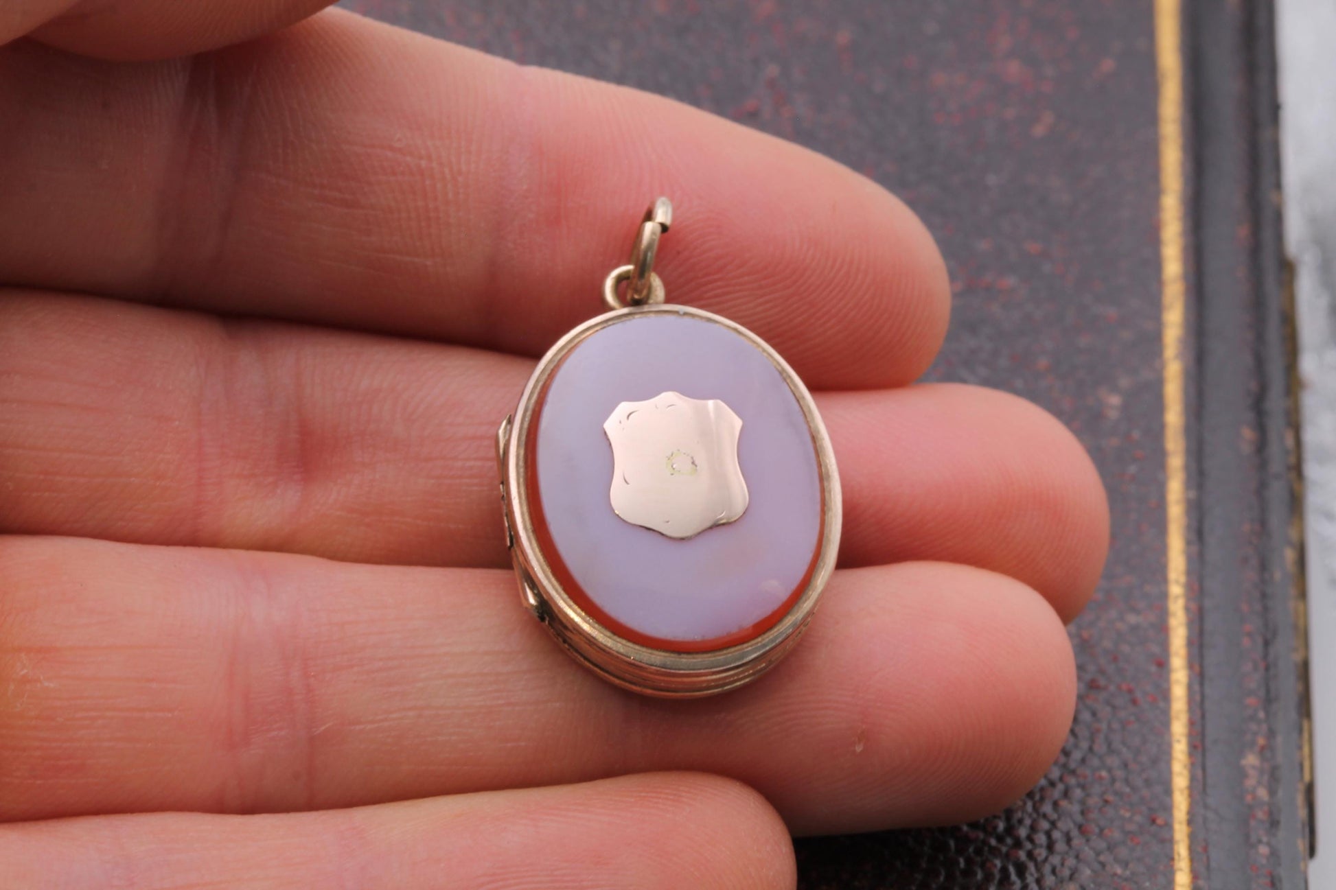 Antique 9ct Gold Sardonyx Shield Locket