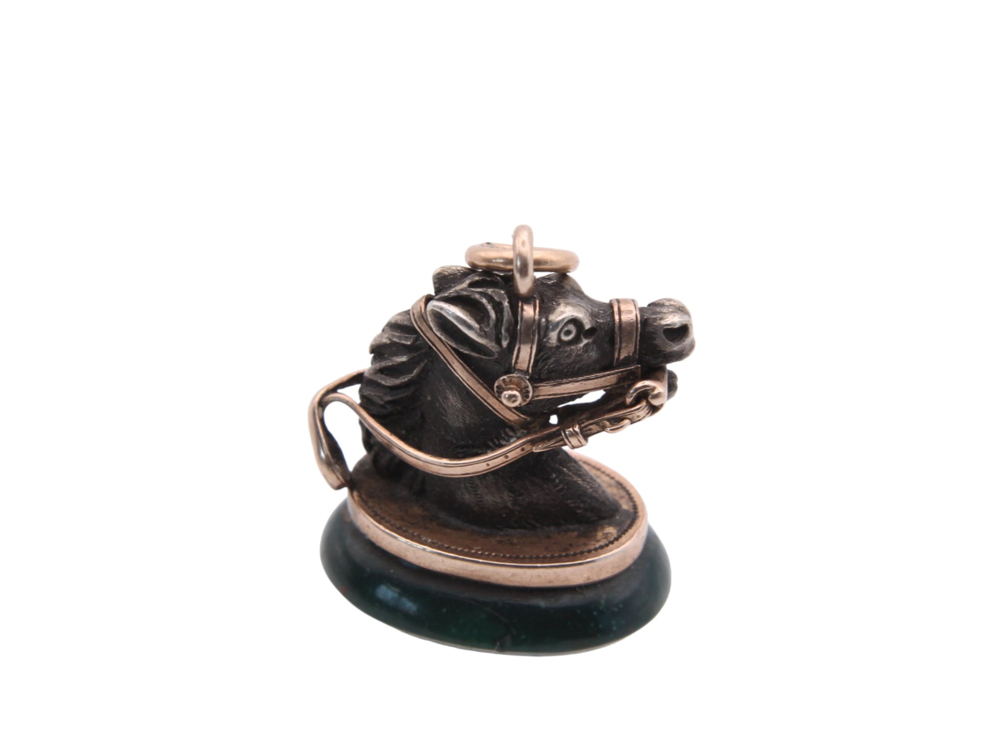 Antique 9ct Gold & Silver Bloodstone Horse Pendant Fob