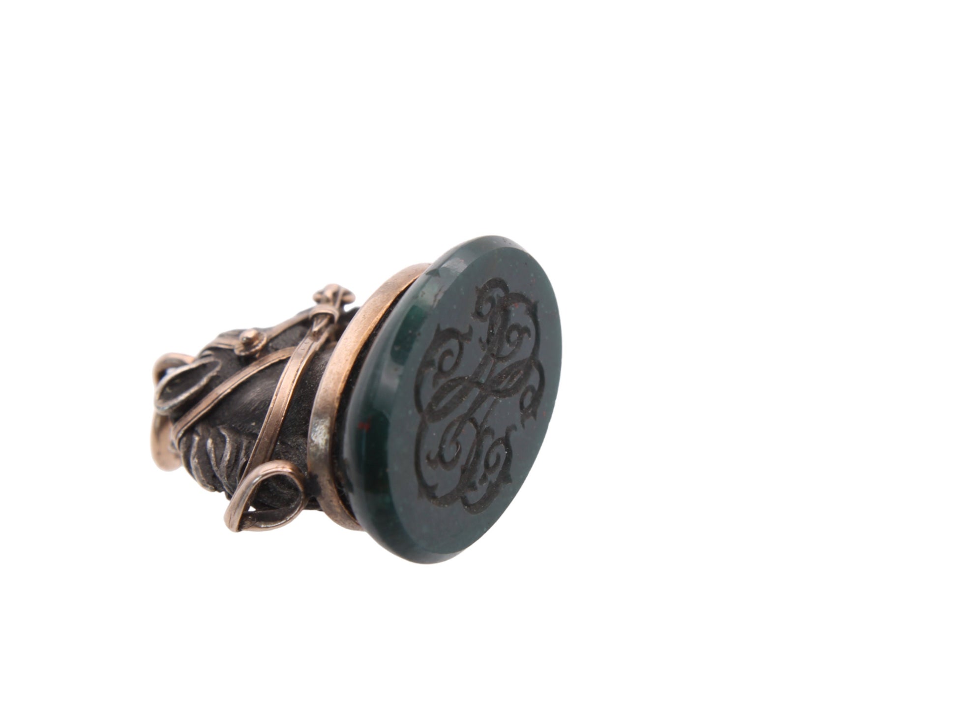 The base has a beautiful bloodstone intaglio with the letters which appear to read "WS" which are overlaid one another.
