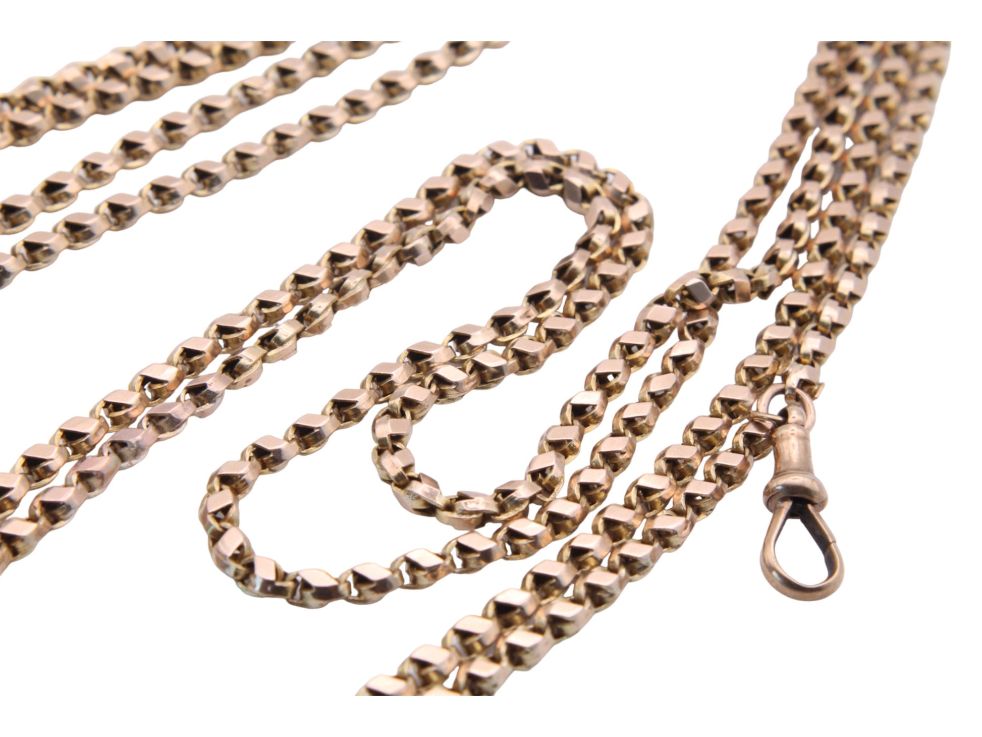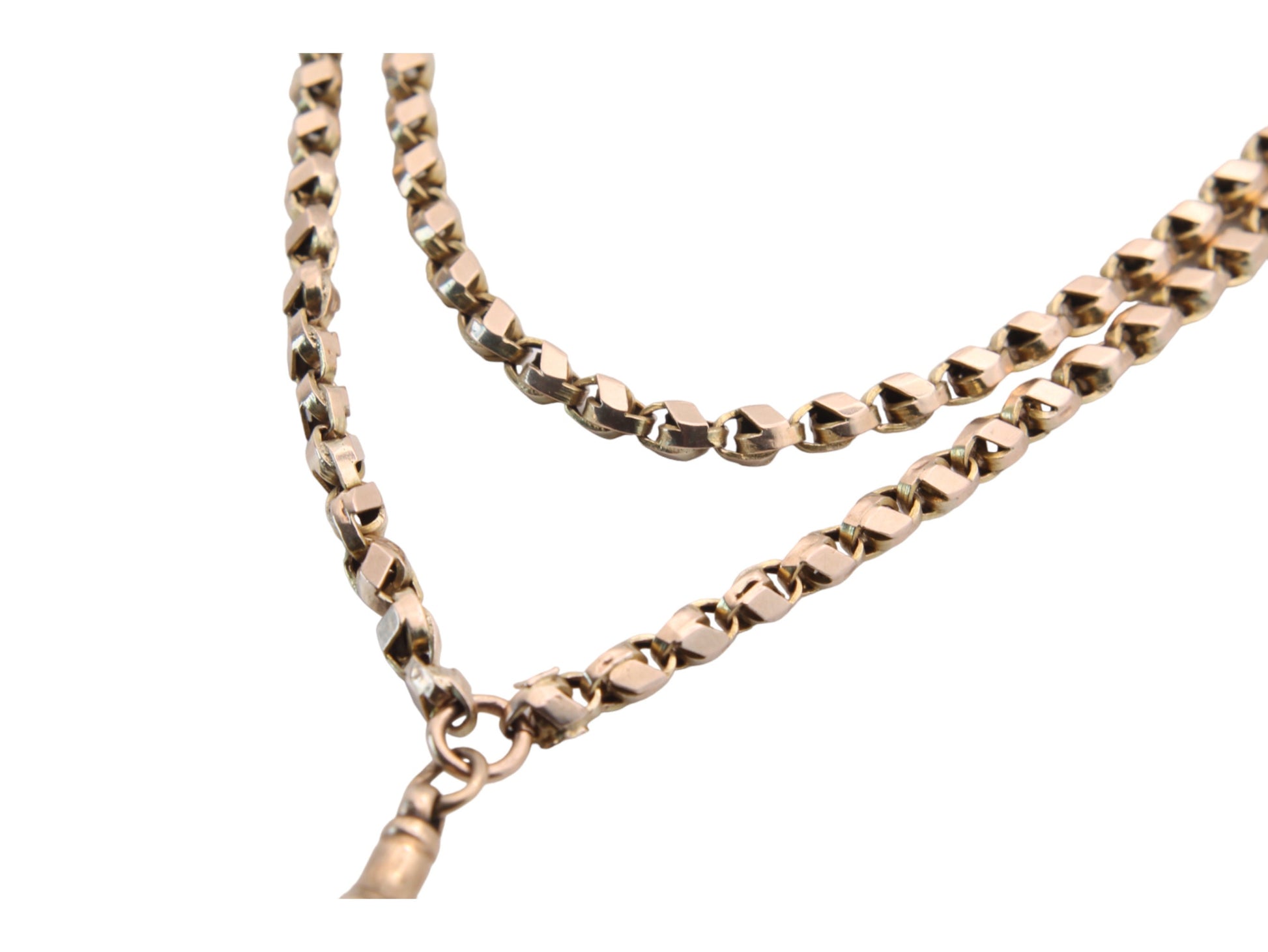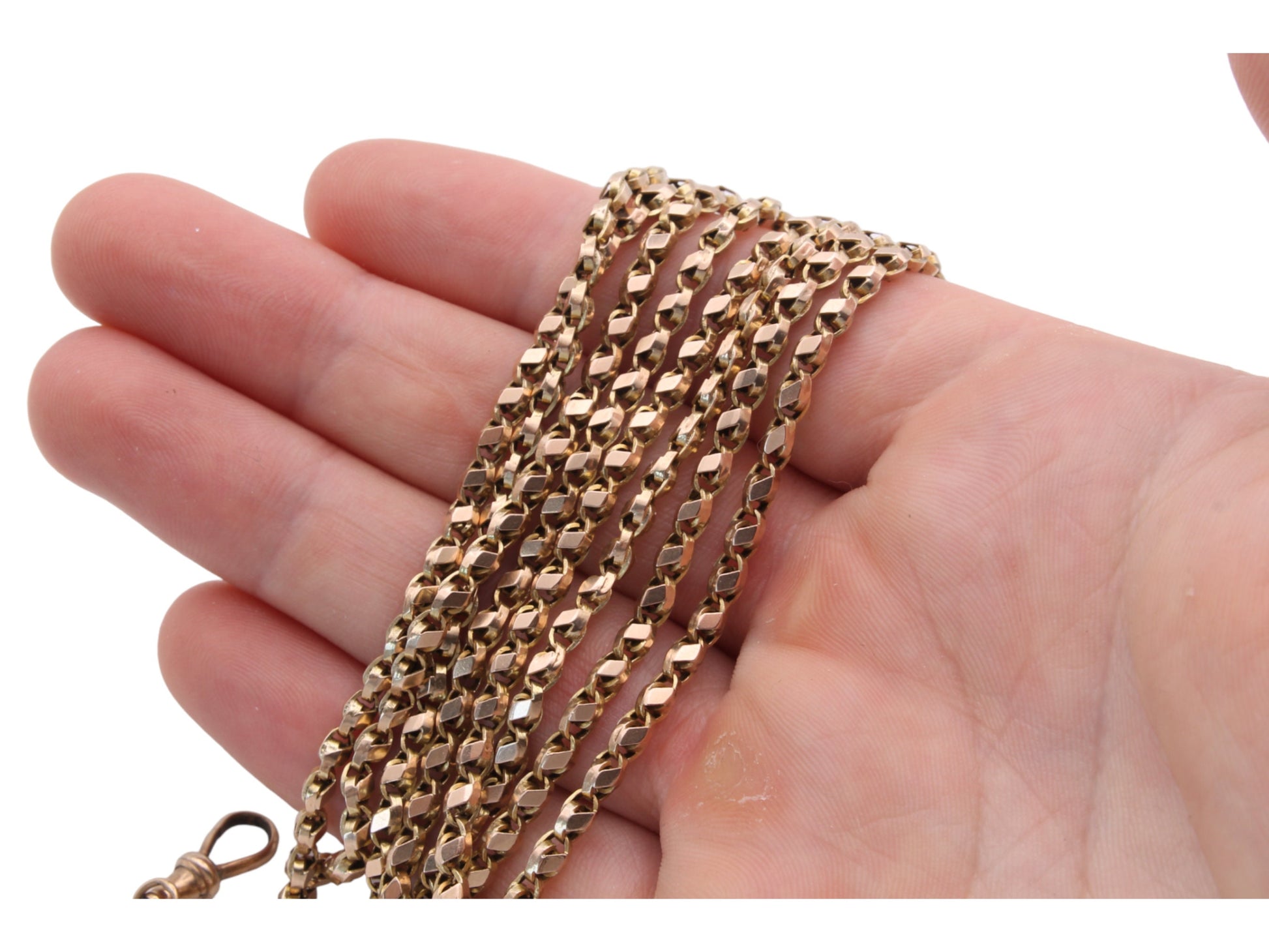 Antique 9ct Gold Tulip Link Long Guard Chain Necklace, 58"