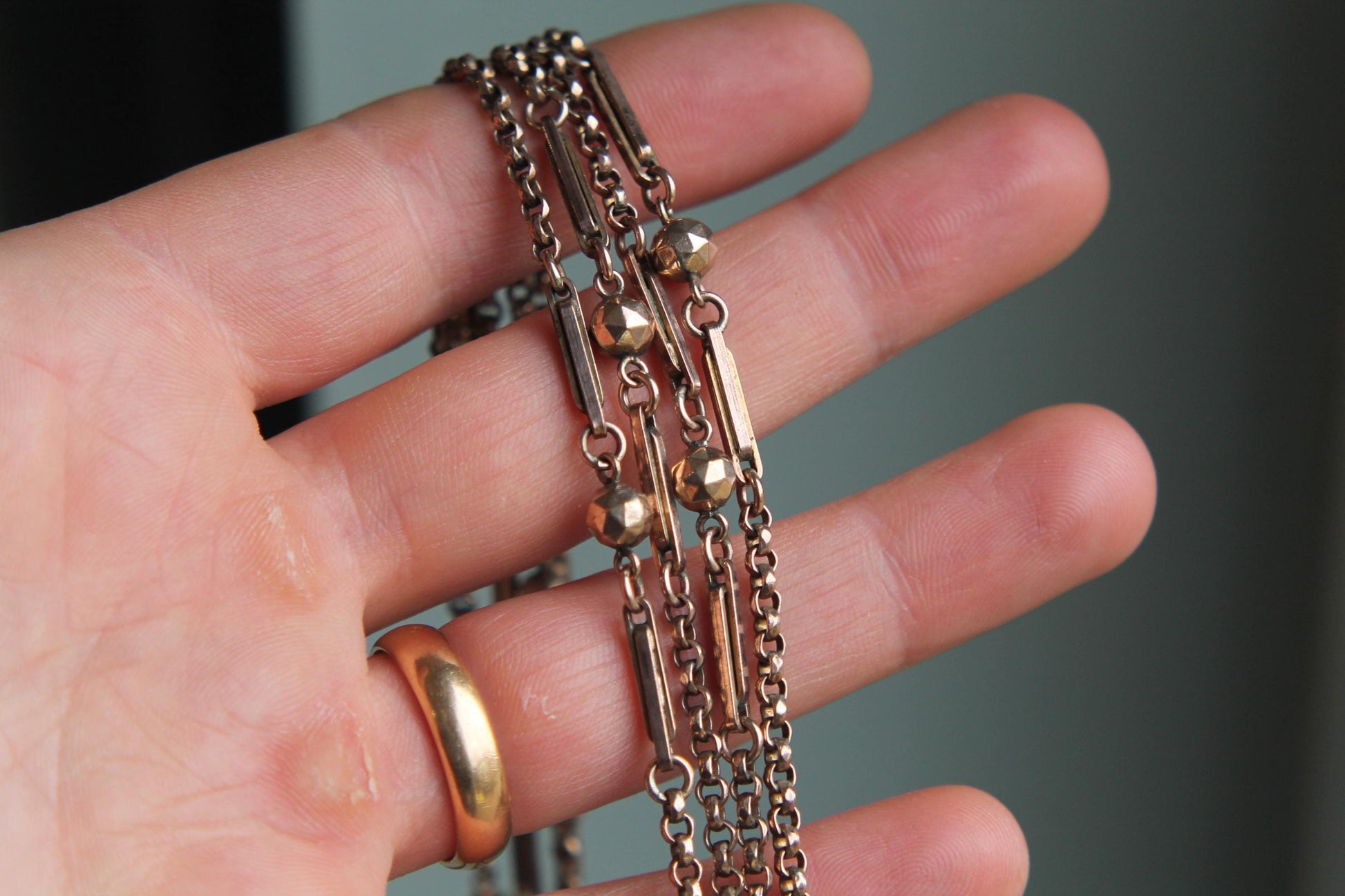 Antique 9ct Rolled Gold Fetter Ball Long Guard Necklace, 51"