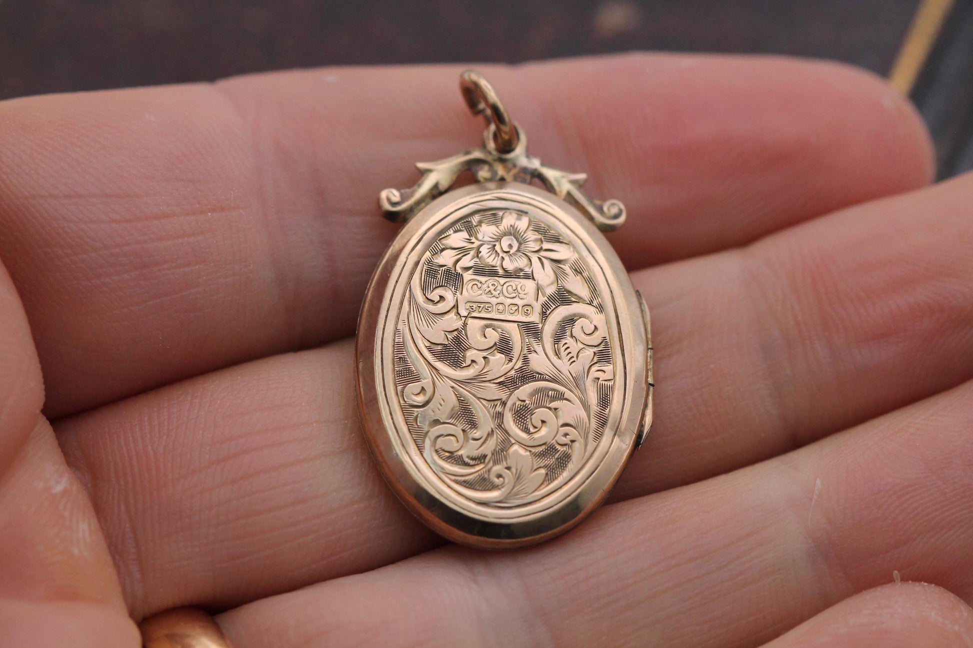 Antique 9ct Rose Gold Chased Locket, Edwardian Oval Floral Pendant, Chester Hallmarked 1906