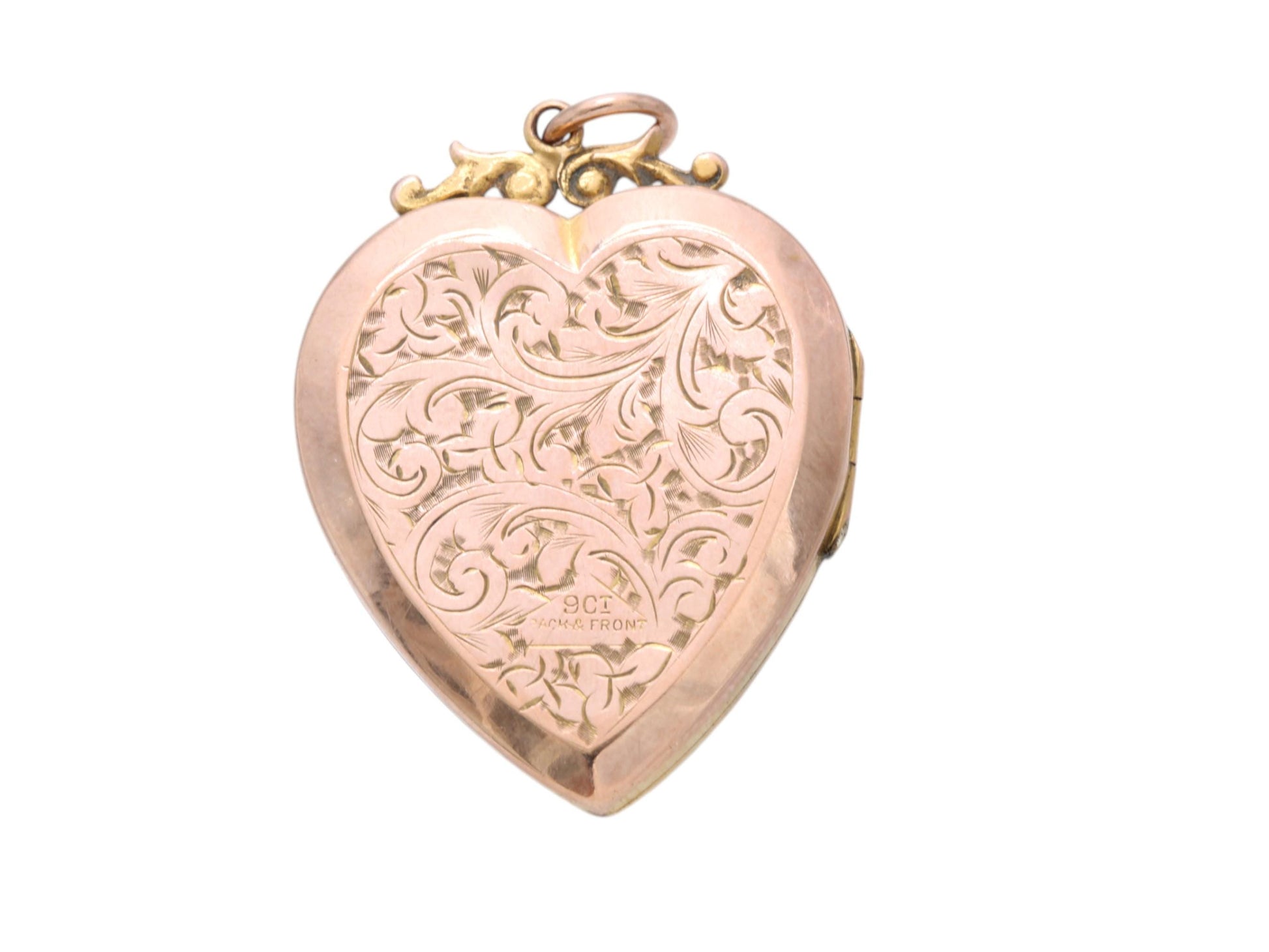 Antique 9ct Rose Gold Large Chased Heart Locket