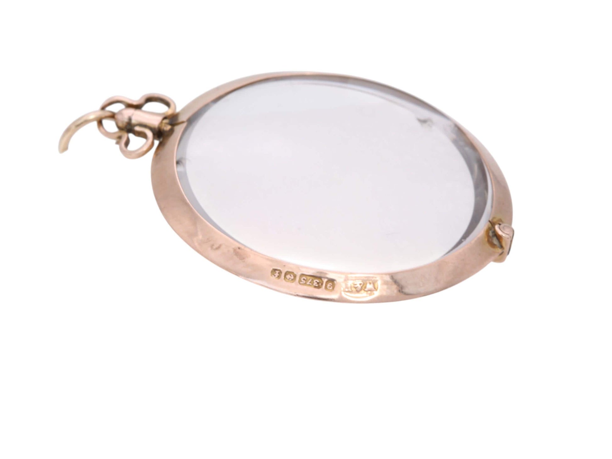 Antique 9ct Rose Gold Open Glass Locket Pendant, 1905