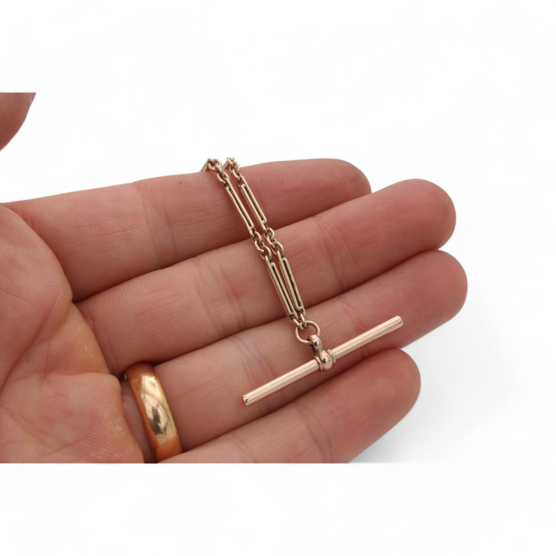 Antique 9ct Yellow Gold Trombone Fetter Link Double Albert Chain, 13.5"