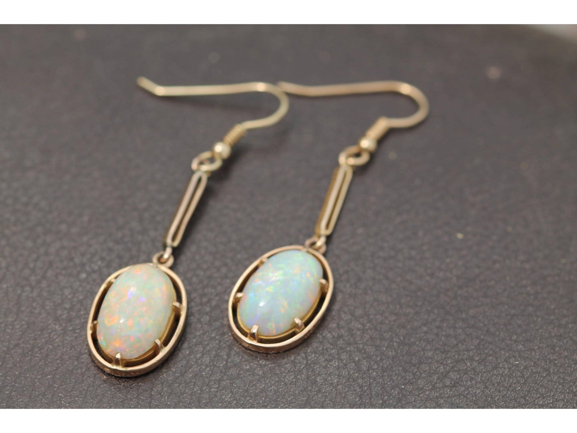 Antique Edwardian 15ct Yellow Gold Opal Drop Earrings