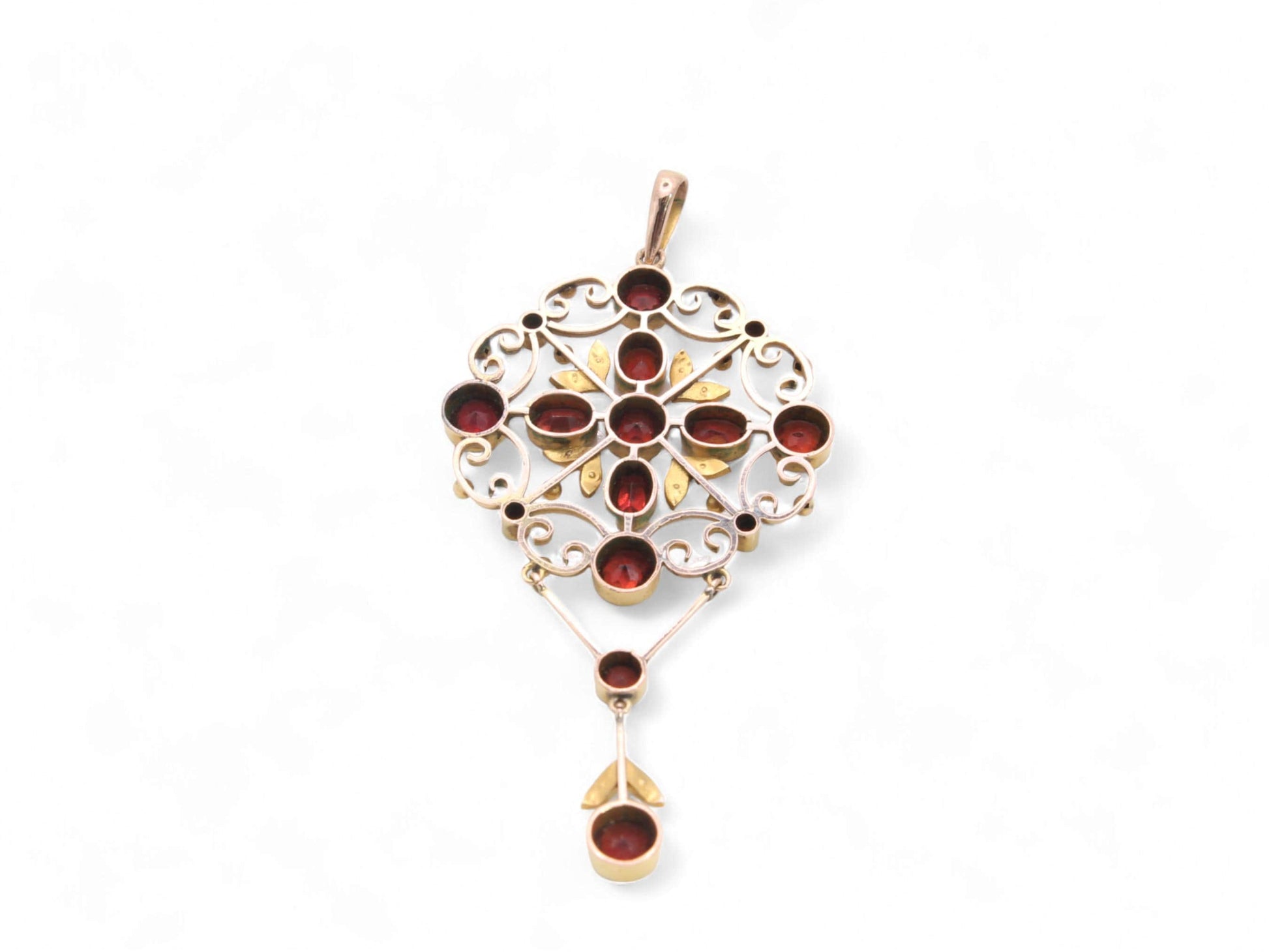 Antique Edwardian 9ct Gold Garnet & Pearl Pendant