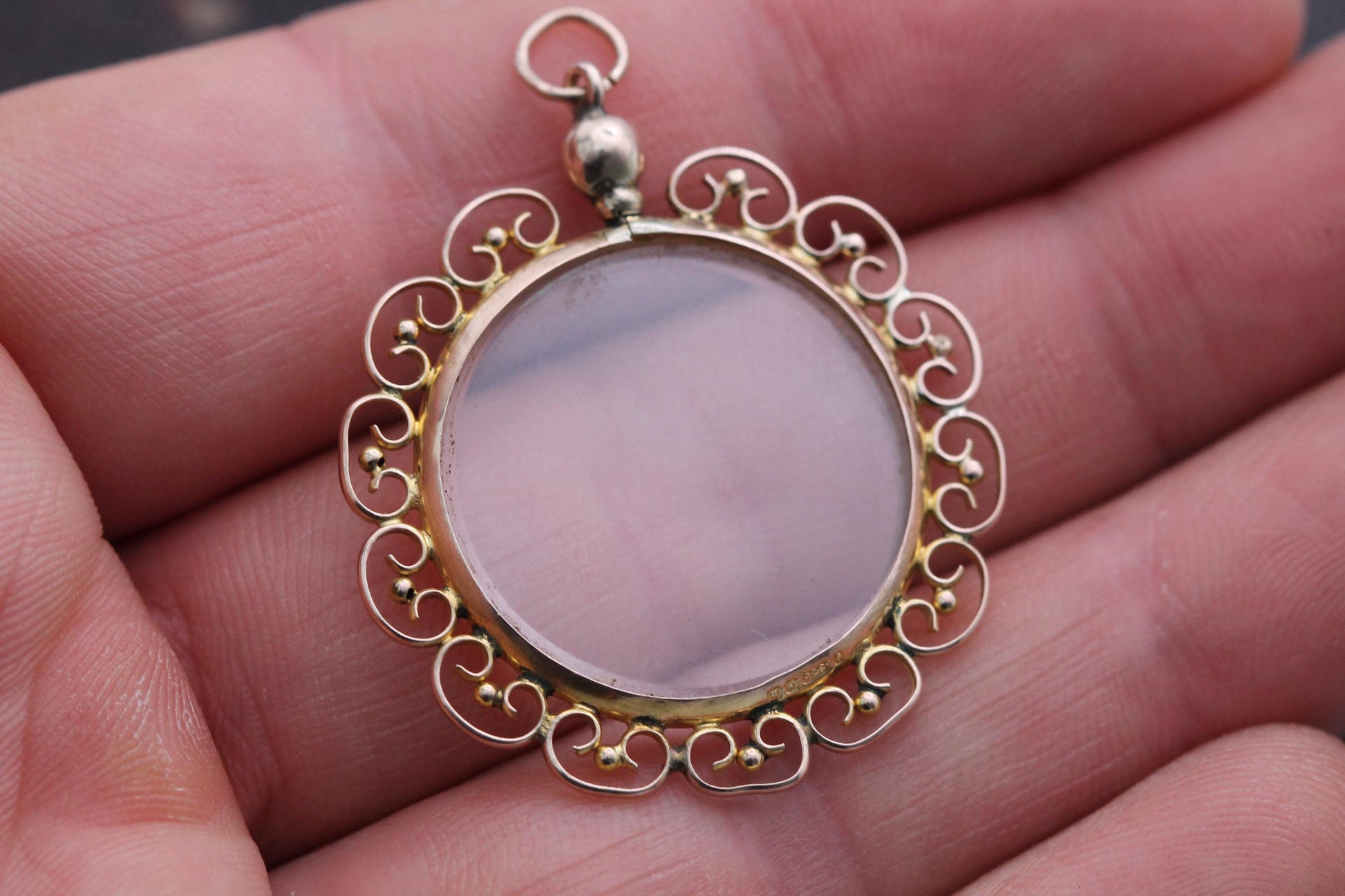 Antique Edwardian 9ct Gold Glass Locket Pendant, Sentimental Keepsake, 1907