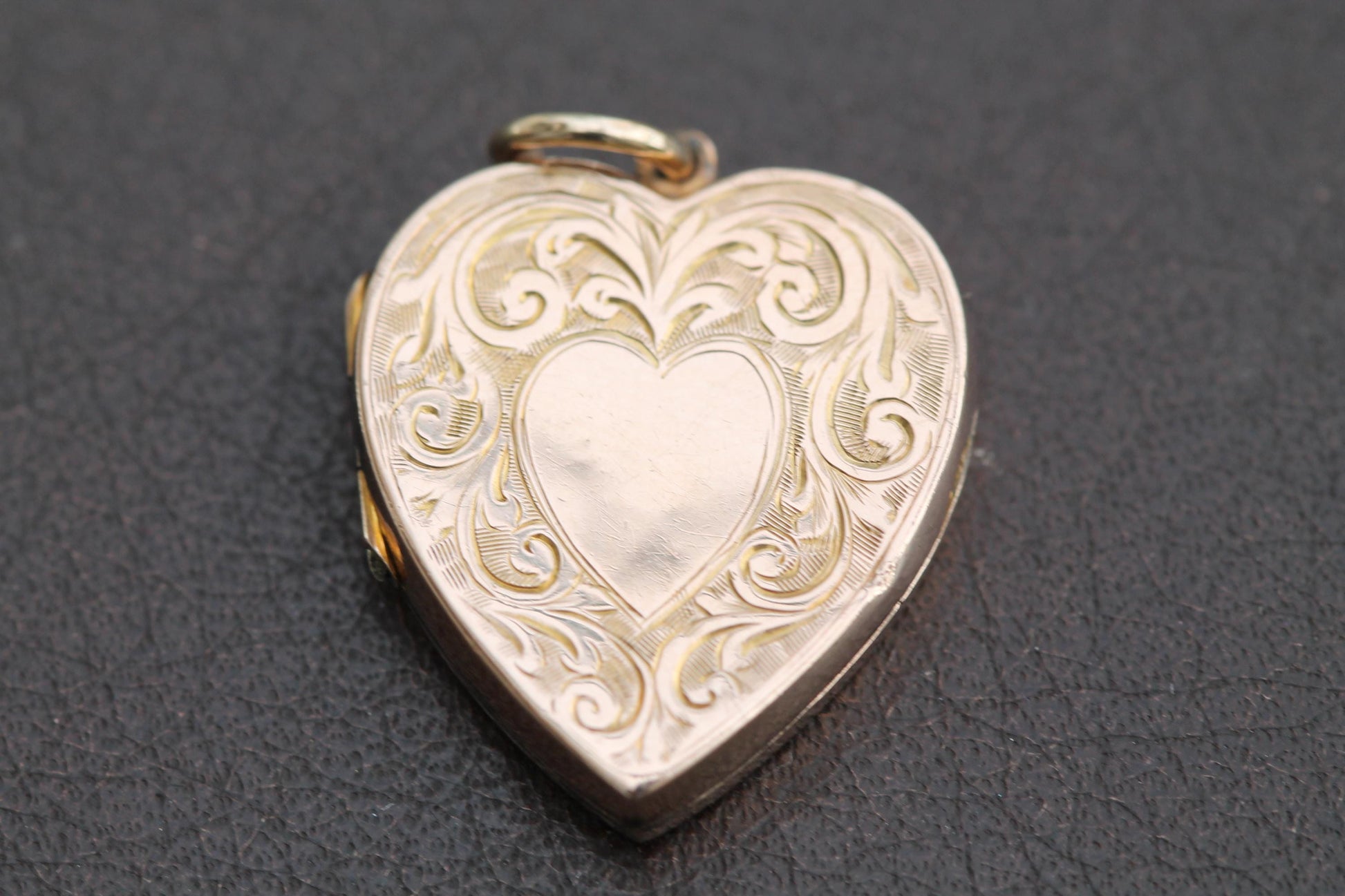 An antique 9ct gold heart-shaped locket, dating to the year 1907. The front is adorned with intricate floral chasing, centred by a plain heart cartouche — a space once intended for initials or a personal inscription. The reverse continues the theme with further floral detail and delicate forget-me-not flowers, a timeless Victorian and Edwardian symbol of love and remembrance. Inside, both inserts and acrylic panels are present, ready to hold treasured keepsakes close to the heart. A locket of sentiment and beauty, carrying forward the stories of those who came before.
