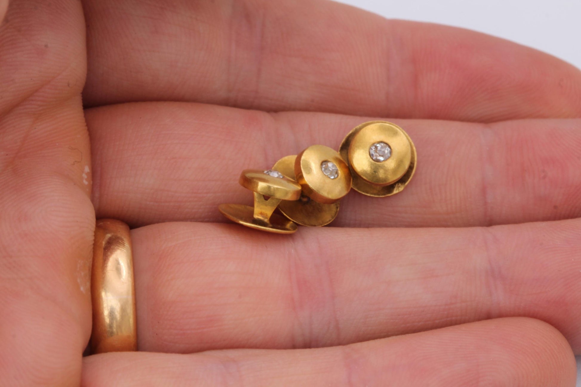 Antique French 18ct Gold Shirt Studs: Old Mine Cut Diamonds, c.1890
