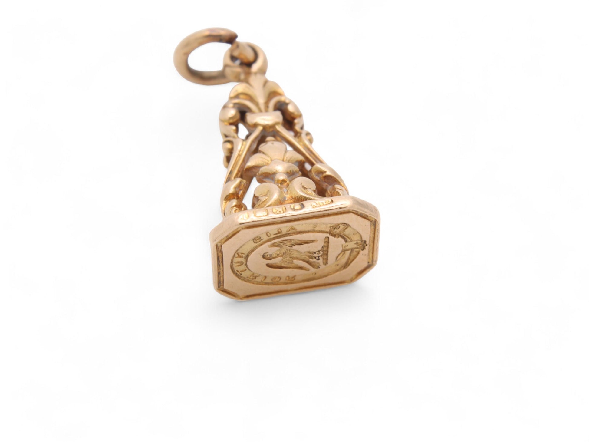 A majestic antique 18ct yellow gold intaglio crested seal pendant with an incredibly detailed fleur de lis mount.