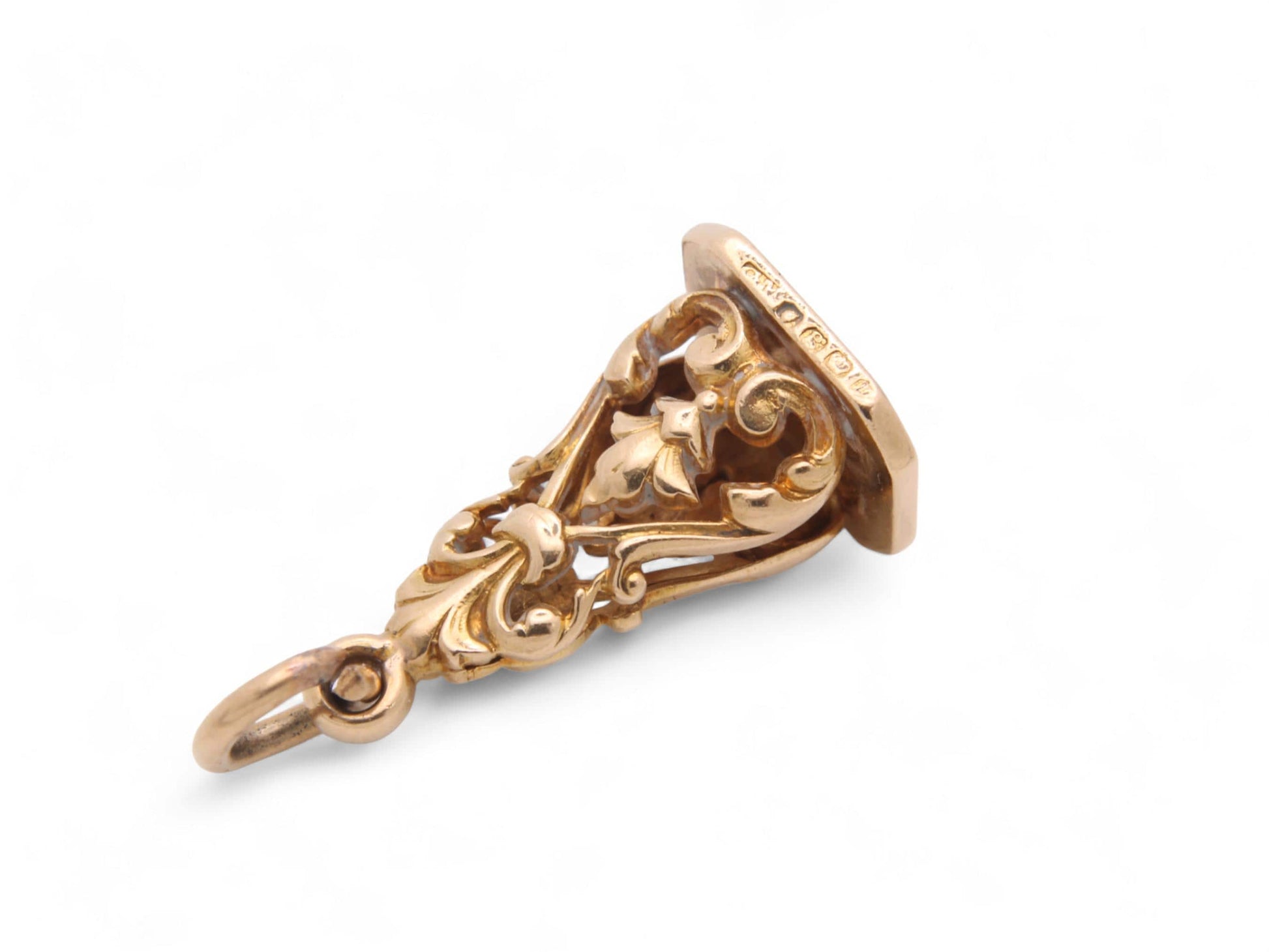 The rich 18ct gold setting enhances the intricate details of the intaglio, making it a striking and timeless accessory. Whether worn as a statement piece or added to a collection of antique treasures, this seal pendant is sure to captivate and inspire.