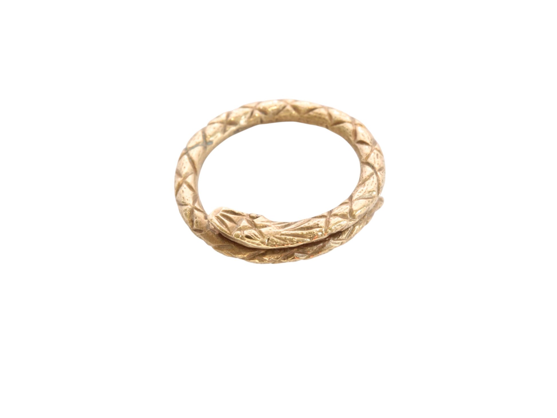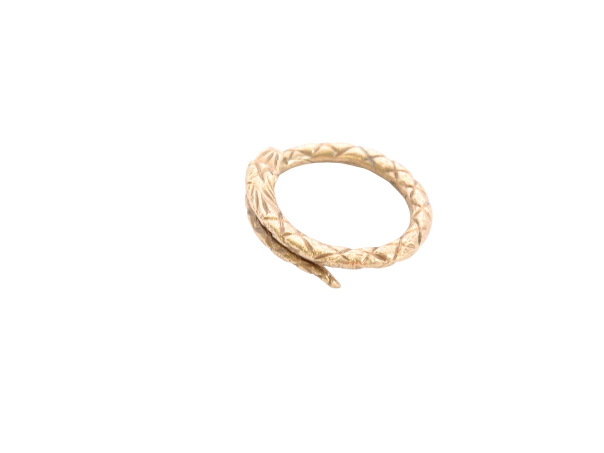 A wonderful antique Georgian 18ct gold split ring, beautifully detailed and formed as a coiled snake, a powerful symbol of eternity and protection during the Georgian era. The fine workmanship captures the character of the snake, with a clearly defined head and tapering tail, all executed with remarkable delicacy.