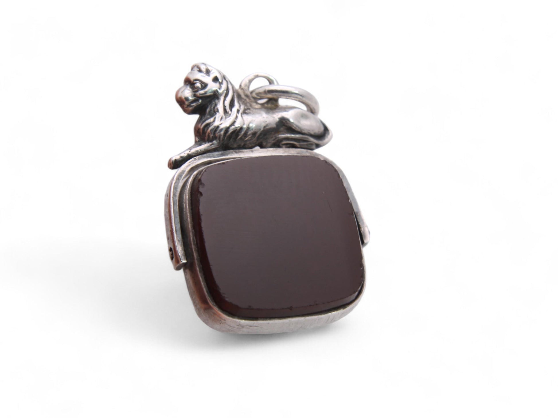 Antique Silver Lion Mounted Spinner Pendant, 1876