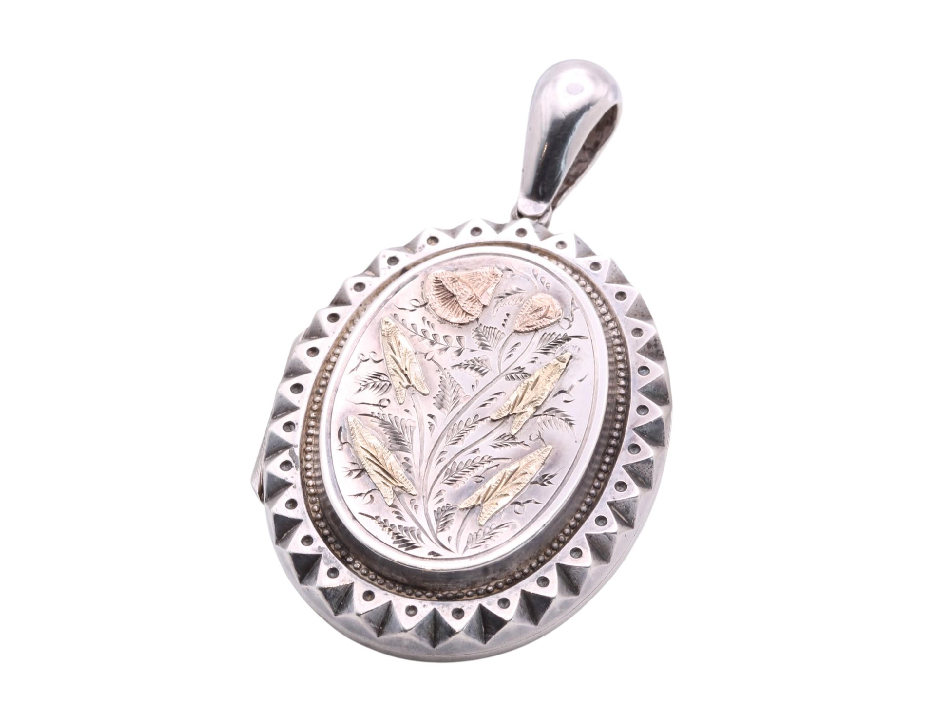 Antique Sterling Silver & 9ct Gold Aesthetic Tulip Locket, 1881