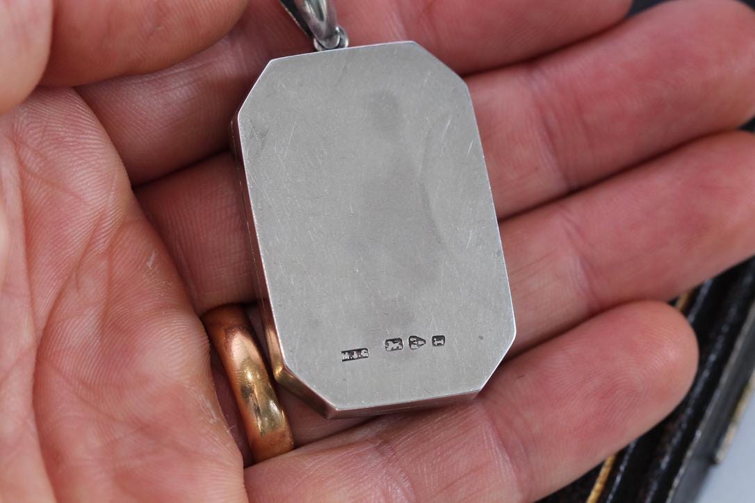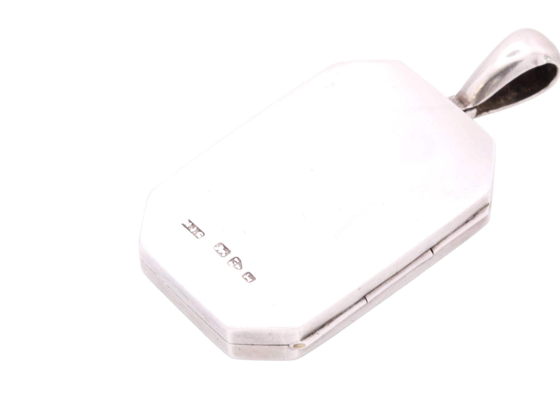 A striking antique sterling silver locket from 1880, crafted in a rectangular, octagonal shape for added character. The front features a delicate floral landscape design with applied 9ct gold leaves, creating a beautiful contrast against the silver. Though the glass is not present, your photos can still be stored using the bezel inserts inside. Immaculate condition throughout, this Victorian locket is a wearable piece of history, perfect for adding a touch of vintage charm to your jewelry collection.